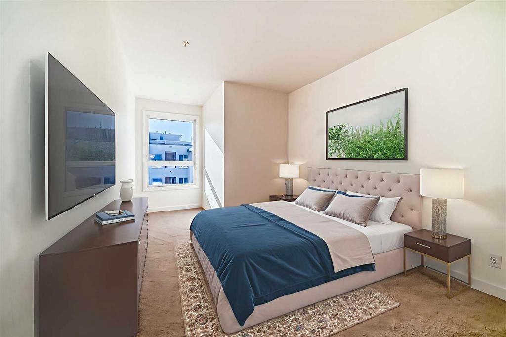 Welcome to this beautifully maintained TOP FLOOR, 2-bed, 2-bath condo in Bridgeland—one of Calgary’s most vibrant and walkable communities. In the desirable Bella Lusso building just steps from trendy shops, popular restaurants, scenic river pathways, convenient transit, the community centre, and downtown, this home offers the perfect blend of urban convenience and neighbourhood charm. Inside this one owner home, you'll find a bright, open layout featuring a generous kitchen, a dedicated dining area, and a cozy living room complete with a gas fireplace. West-facing windows flood the living space with natural light, and the private balcony overlooking the quiet courtyard is perfect for relaxing or entertaining. Freshly painted throughout, the unit also boasts brand new carpet in the spacious primary bedroom, which includes a large walk-in closet and a private four-piece ensuite. The second bedroom is ideally situated next to the main three-piece bathroom, which also includes in-suite laundry with a new stacking washer and dryer (less than one year old). Additional features include PET FRIENDLY building, secure underground parking with a car wash, bike storage, a secured storage locker, and plenty of visitor parking. Don’t miss this fantastic opportunity to own in one of Calgary’s most desirable inner-city communities—with everything you need right at your doorstep. Vacant for quick possession!