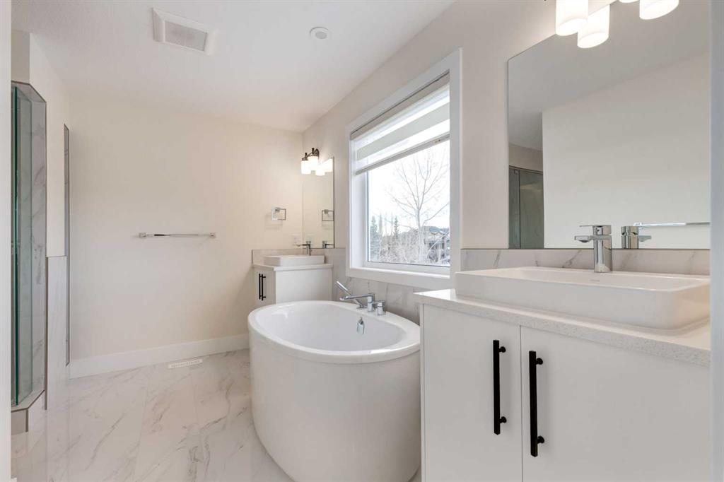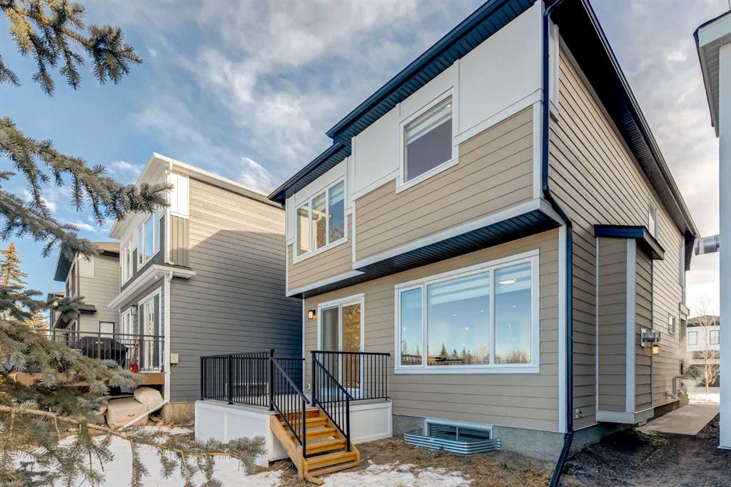 Huge Price Reduction! Experience refined modern living in this brand-new Truman-built “Forte” home, perfectly positioned in the prestigious community of Aspen Woods. With over 2,900 sq. ft. of fully developed living space, including a professionally finished basement, this west-facing property backs onto green space and offers both luxury and functionality in a truly move-in-ready residence. The main level is thoughtfully designed with 9 ft ceilings, elegant 8 ft doors, upgraded lighting, and luxury vinyl plank flooring that extends throughout the main floor and basement. A striking gas fireplace with a full-height marble surround anchors the open living area, creating a sophisticated focal point for everyday living and entertaining. At the heart of the home, the chef-inspired kitchen features full-height cabinetry, quartz countertops, a walk-through pantry, and an upgraded SS appliance package including a gas stove, chimney-style hood fan, and built-in microwave. The adjacent dining area opens onto a west-facing Duradeck-finished deck with a gas line, ideal for outdoor gatherings and sunset views. The upper level offers 4 generously sized bedrooms, a bright bonus room enhanced by dual windows, and a conveniently located laundry room. The primary suite is a private retreat, complete with a spa-like ensuite showcasing an upgraded glass shower, standalone soaker tub, and refined finishes. Upgraded carpeting adds warmth and comfort throughout the upper floor. A separate side entrance leads to the fully finished basement, which expands the home’s versatility with a spacious recreation room, wet bar, bedroom, and a full 4-piece bathroom—perfect for guests or multi-generational living. Luxury vinyl plank flooring continues on this level, maintaining both style and durability. Additional features include a finished garage, thoughtfully upgraded lighting, and Truman’s renowned build quality. Located close to top-rated schools, LRT access, shopping centres, downtown Calgary, and major transportation routes, this exceptional home delivers a seamless blend of elegance, comfort, and convenience in one of Calgary’s most desirable west-side neighbourhoods.
