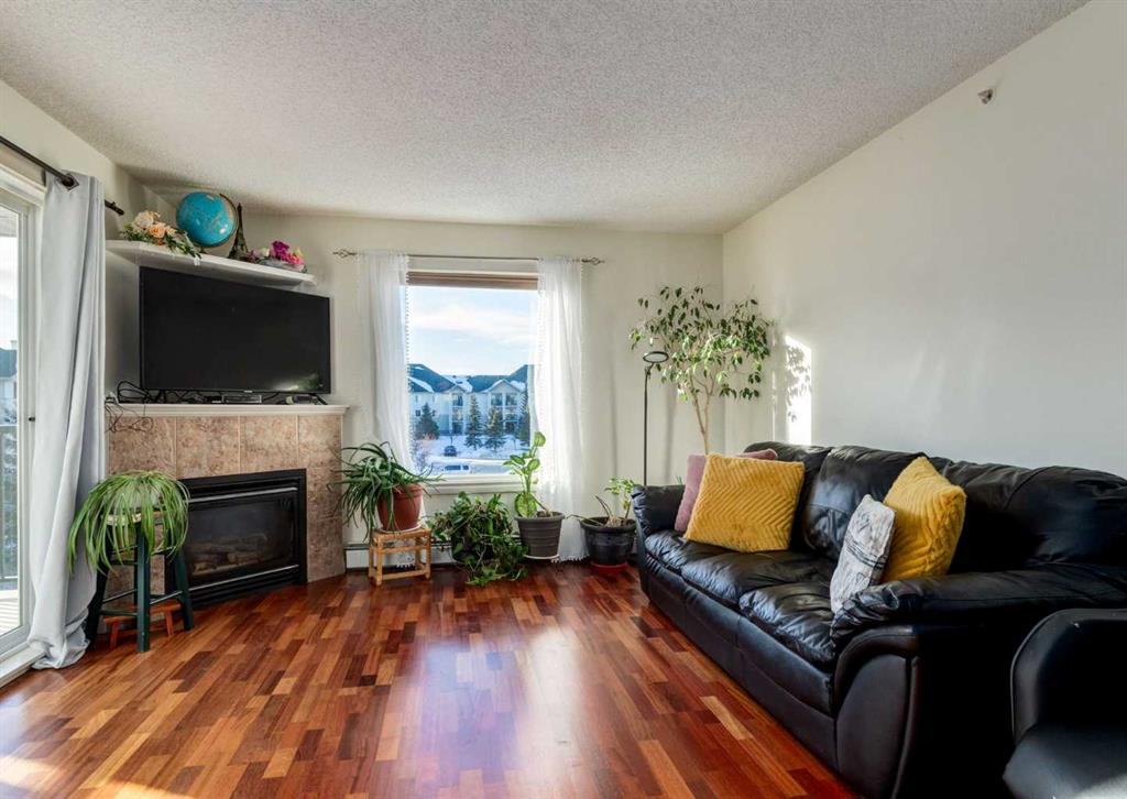 Welcome to this beautifully maintained 2-bedroom, 2-bathroom end-unit condo in the desirable community of Evergreen SW, offering added privacy, abundant natural light, and southwest-facing balcony views—perfect for enjoying afternoon sun and sunsets. A spacious foyer welcomes you into the home, leading to an open-concept layout highlighted by rich cherry laminate flooring and a cozy gas fireplace with a stylish mantle, creating a warm and inviting living space that flows seamlessly into the dining area and out to the balcony, ideal for both everyday living and entertaining. The spacious kitchen offers ample cabinetry and counter space, making it both functional and welcoming. The primary bedroom features a walk-through closet and private ensuite, while the second bedroom and full bathroom add flexibility to the layout. Additional highlights include titled heated underground parking, extra storage, and the convenience of a well-managed complex, all just minutes from coffee shops, grocery stores, bike paths, parks, transit, and the many amenities Evergreen has to offer—bright, private, and exceptionally located condo living at it's best. Book your private showing today!