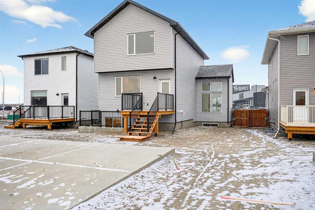 Legally suited home, main floor office, dedicated laundry room, high-end appliances, plenty of parking, and front landscaping included — and that’s just the opening act. This beautifully designed property is located in the brand new community of Malloy Landing, directly across the street from the SHIFT Community Centre and Coaldale Prairie Winds Secondary School, making everyday life incredibly convenient. Walking to the gym or sending the kids to school without ever starting the car is not just possible here, it’s the norm. Built by Stranville Living Master Builder, this home features the highly sought-after Kendrick floor plan and showcases the thoughtful design and elevated finish Stranville is known for. The main living area immediately impresses with soaring 11-foot ceilings and oversized windows that flood the open-concept space with natural light, creating a bright and welcoming atmosphere that feels both modern and warm. Just a few steps up, the kitchen and dining area strike the perfect balance between form and function. You’ll find Stranville’s signature panel-ready Fisher & Paykel fridge, a panelled dishwasher, sleek induction cooktop, quartz countertops, and a spacious pantry that actually keeps up with real life. This space feels refined without trying too hard, and it flows effortlessly for everyday living or entertaining. At the back of the home, a triple-car parking pad adds serious convenience and flexibility, whether it’s for multiple vehicles, guests, or future garage plans. The main floor office deserves special mention, with nearly floor-to-ceiling windows that make working from home feel anything but ordinary. It’s a space that’s equal parts productive and inspiring, and one you’ll genuinely enjoy spending time in. Upstairs, the second level offers three spacious bedrooms, including a well-designed primary retreat. The ensuite features a walk-in shower and a generous walk-in closet that conveniently connects directly to the dedicated laundry room — a small detail that makes a big difference in daily living. The fully finished lower level includes a legal two-bedroom suite with its own stylish kitchen, complete with quartz countertops, making it an excellent option for extended family, guests, or added income potential. Outside, the front yard will be completed with clean, low-maintenance xeriscape landscaping, along with wing fencing, ensuring curb appeal is taken care of from day one. This is a home that blends smart design, premium finishes, and an unbeatable location, all in one of Coaldale’s most exciting new communities. This home is virtually staged. GST is Included in the sales price and a 10 year new home warranty.