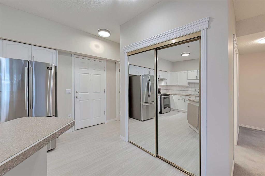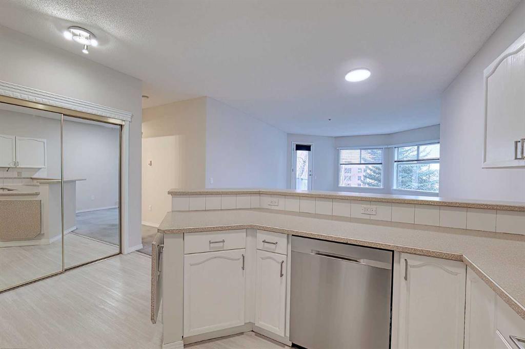 Welcome to College Gardens in desirable Lincoln Park SW Calgary — ideally located right next to Mount Royal University with quick access to transit, major routes, and everyday amenities. This 3rd-floor unit is bright and well cared for, featuring a west-facing balcony overlooking the front courtyard—the perfect spot to enjoy the afternoon sun. Inside, you’ll appreciate the fresh professional paint and the excellent condition throughout, along with a spacious 1,028 sq ft layout offering 2 bedrooms and 2 bathrooms. The open-concept kitchen is finished with stainless steel appliances, 9 ft ceilings, a convenient breakfast bar, plus thoughtful upgrades like a garburator and in-line water filter. The floorplan works beautifully for roommates, guests, or a home office setup, with comfortable living and dining areas to match. College Gardens offers outstanding resident amenities including a recreation room and woodworking shop, and this home comes complete with 1 underground parking stall and separate storage. A fantastic opportunity in a highly sought-after inner-city location!