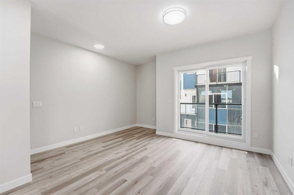 A rare combination of privacy, natural light, and functional design defines this contemporary 3-storey townhouse offering 3 spacious bedrooms, each with its own private ensuite—ideal for families, professionals, or multi-generational living. The entry level welcomes you with a practical foyer and a flexible bedroom that works perfectly as a guest suite, home office, or private retreat. The main floor is bright and inviting, featuring large windows, an open-concept layout, and a modern kitchen equipped with stainless steel appliances, sleek lighting, and a functional breakfast bar—perfect for entertaining or everyday living. A convenient powder room and a cozy balcony complete this level. Upstairs, you’ll find two generous primary bedrooms, both with private ensuites. One suite offers a walk-in closet and dual vanity for added comfort. A stacked laundry closet completes the top floor. Additional highlights include a single attached garage, low condo fees, ample visitor parking, and future nearby green space. With quick access to Stoney Trail, commuting and daily errands are seamless. Modern comfort, flexible living, and a convenient location—this move-in-ready home checks all the boxes.