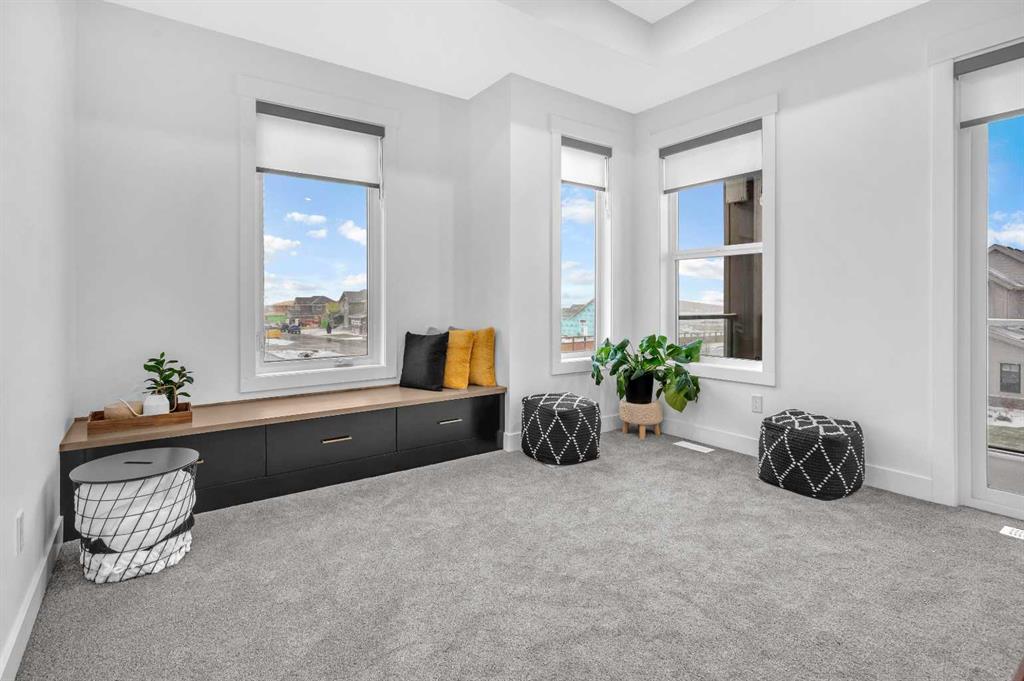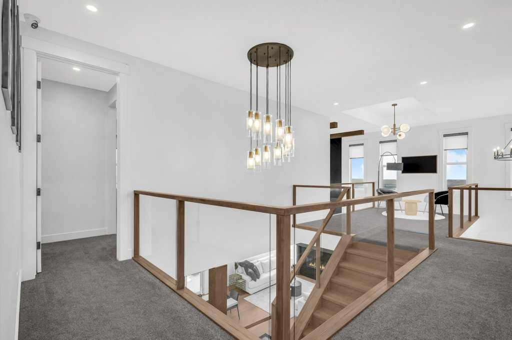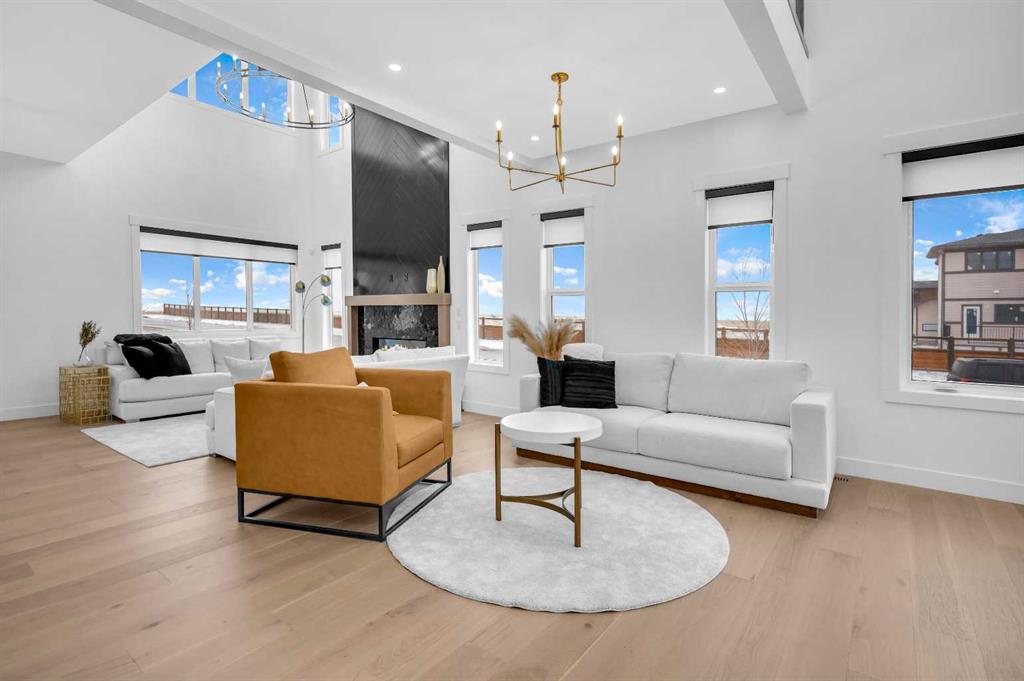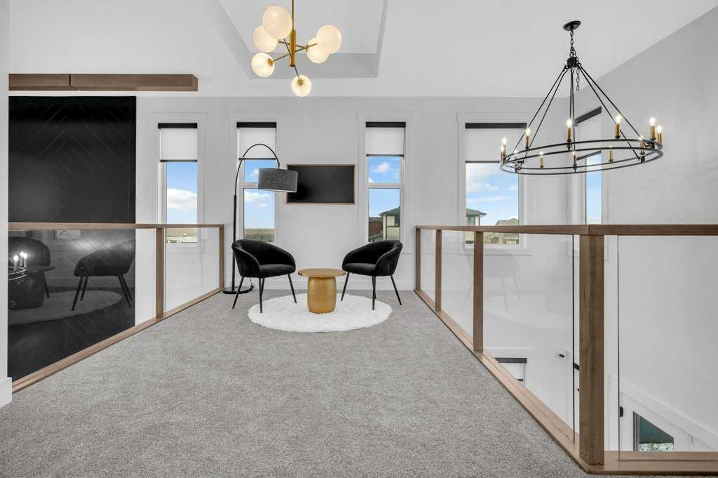 Welcome to this stunning luxury home by Brilliance Homes in the community of Goldwyn Estates. With a triple car garage, 6 bedrooms, and 6 bathrooms spread across just under 3,500 square feet, this home offers thoughtful design, top tier finishes, and all the bells and whistles you’ve come to expect from the Showhome. Nestled in a prime location with quick access to both Airdrie and Calgary, Goldwyn Estates offers the best of both worlds. You'll enjoy being just minutes from the amenities of CrossIron Mills while still surrounded by peaceful green space, walking paths, a pond, and a beautifully landscaped park and playground just steps away. Inside, you're greeted by 10 foot ceilings and a flowing open concept layout. The spacious main floor features a walk through mudroom, a private bedroom with a full bathroom, perfect for guests or multi generational living, and a separate office or den. The living room showcases dramatic open to below ceilings that seamlessly connect to the chef-inspired kitchen, complete with quartz countertops, sleek built-in appliances, and a fully equipped spice kitchen. Upstairs, the primary suite is a true retreat with tray ceilings, a beautifully finished ensuite, and a generous walk-in closet. You'll find three more bedrooms upstairs, with three full bathrooms as well. Say goodbye to morning chaos. A full laundry room and a bonus room with tray ceilings complete this level, offering space for the whole family to unwind. The fully finished walkout basement is where function meets fun. With two more bedrooms, a full bathroom, a home gym, and a spacious rec. room with a wet bar, this level is ready for movie nights, fitness goals, and everything in between. The backyard opens directly onto a scenic walking path, offering the perfect balance of privacy and connection to nature. Now is the time to secure your future dream home! Don’t miss your chance to live in luxury with Brilliance Homes at Goldwyn Estates.