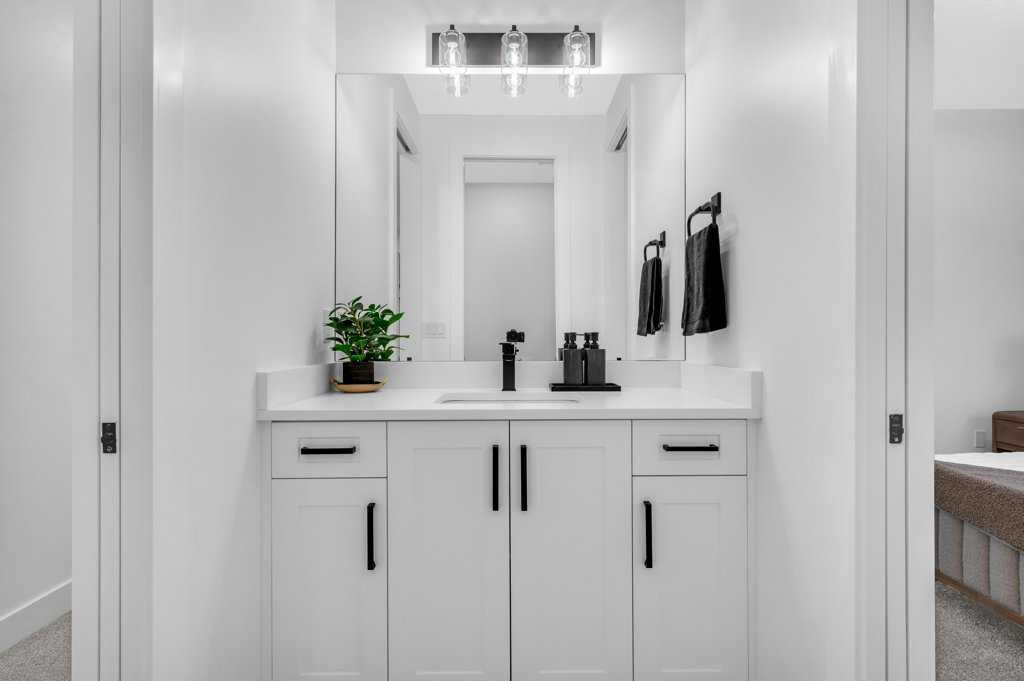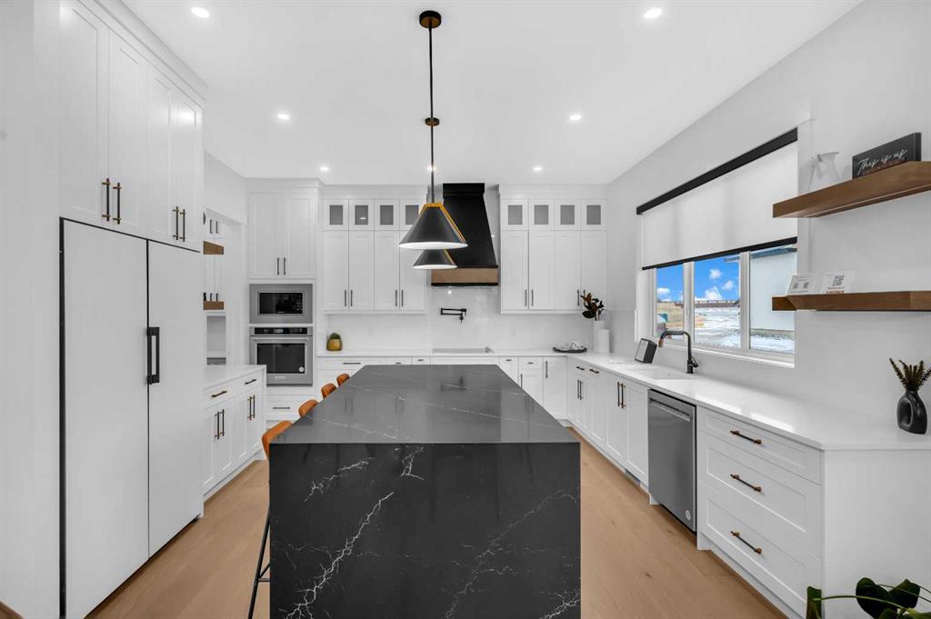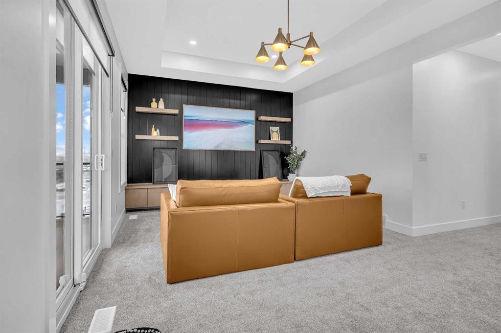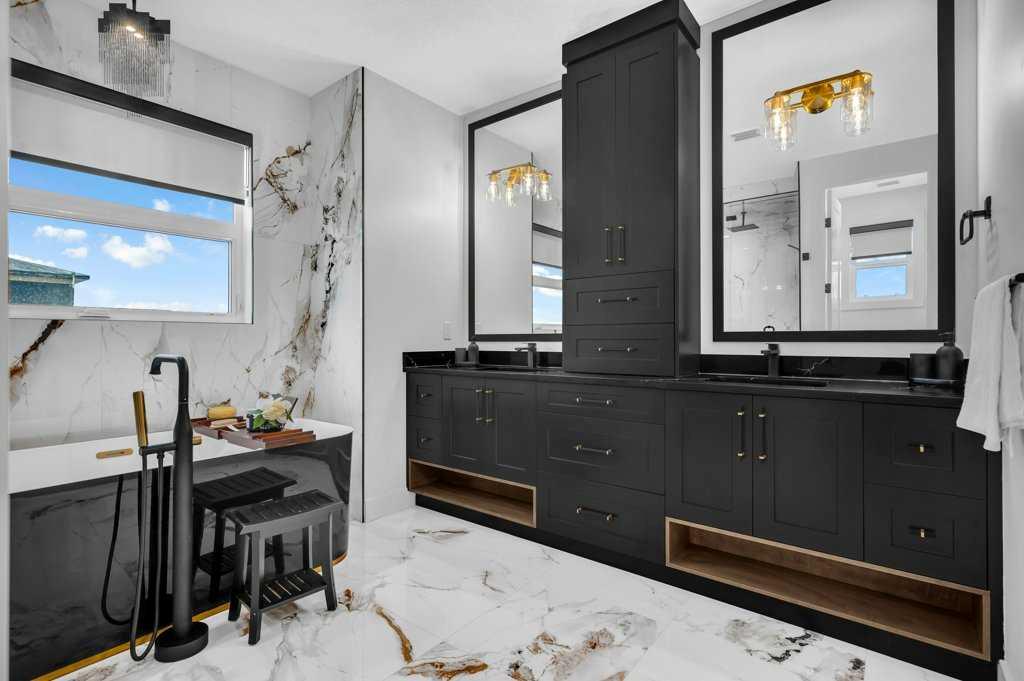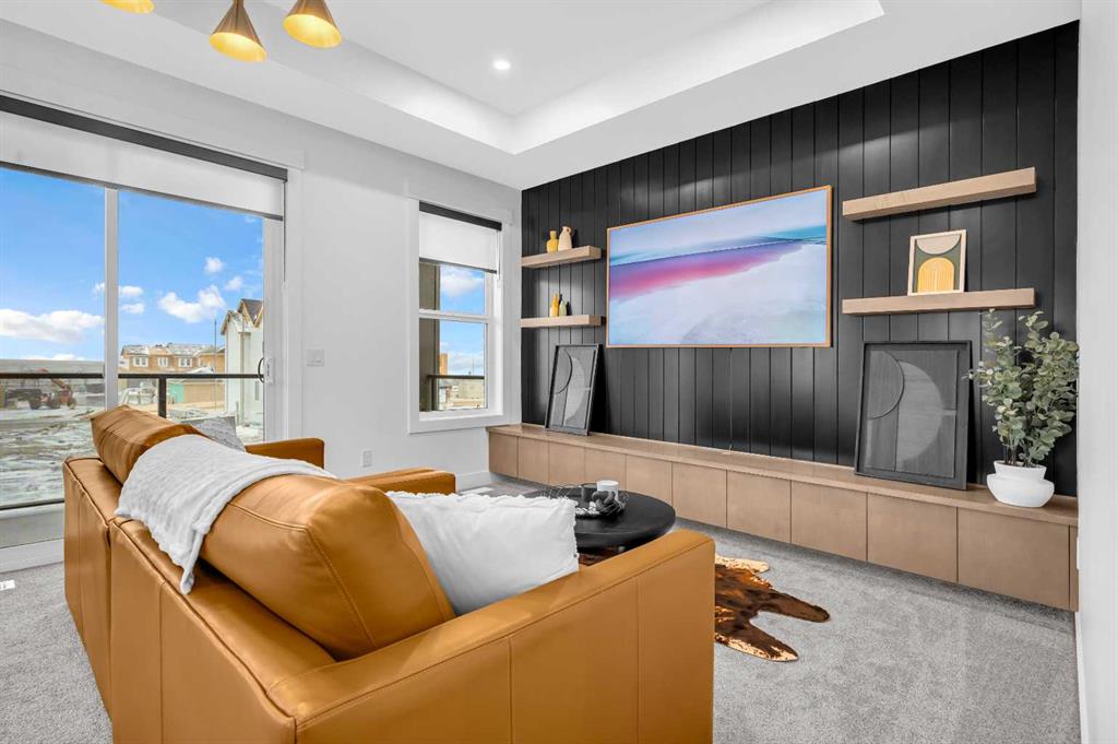 Welcome to this stunning luxury home by Brilliance Homes in the community of Goldwyn Estates. With a triple car garage, 6 bedrooms, and 6 bathrooms spread across just under 3,500 square feet, this home offers thoughtful design, top tier finishes, and all the bells and whistles you’ve come to expect from the Showhome. Nestled in a prime location with quick access to both Airdrie and Calgary, Goldwyn Estates offers the best of both worlds. You'll enjoy being just minutes from the amenities of CrossIron Mills while still surrounded by peaceful green space, walking paths, a pond, and a beautifully landscaped park and playground just steps away. Inside, you're greeted by 10 foot ceilings and a flowing open concept layout. The spacious main floor features a walk through mudroom, a private bedroom with a full bathroom, perfect for guests or multi generational living, and a separate office or den. The living room showcases dramatic open to below ceilings that seamlessly connect to the chef-inspired kitchen, complete with quartz countertops, sleek built-in appliances, and a fully equipped spice kitchen. Upstairs, the primary suite is a true retreat with tray ceilings, a beautifully finished ensuite, and a generous walk-in closet. You'll find three more bedrooms upstairs, with three full bathrooms as well. Say goodbye to morning chaos. A full laundry room and a bonus room with tray ceilings complete this level, offering space for the whole family to unwind. The fully finished walkout basement is where function meets fun. With two more bedrooms, a full bathroom, a home gym, and a spacious rec. room with a wet bar, this level is ready for movie nights, fitness goals, and everything in between. The backyard opens directly onto a scenic walking path, offering the perfect balance of privacy and connection to nature. Now is the time to secure your future dream home! Don’t miss your chance to live in luxury with Brilliance Homes at Goldwyn Estates.