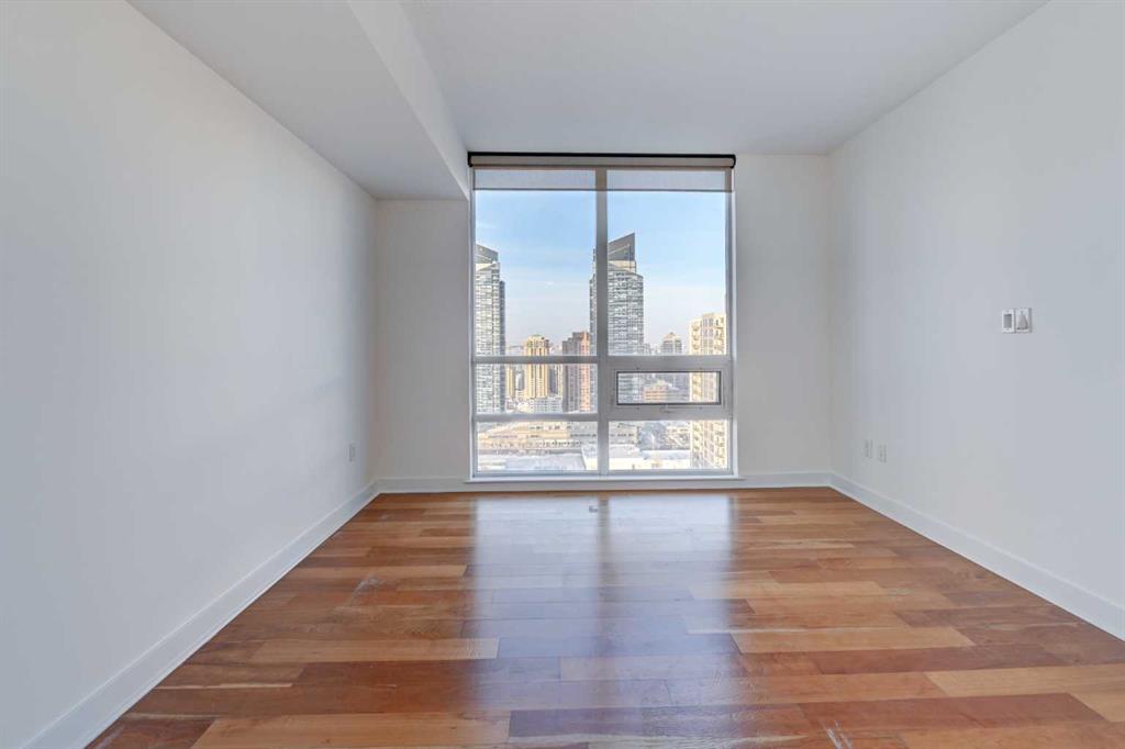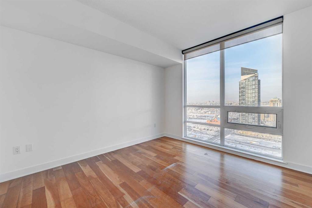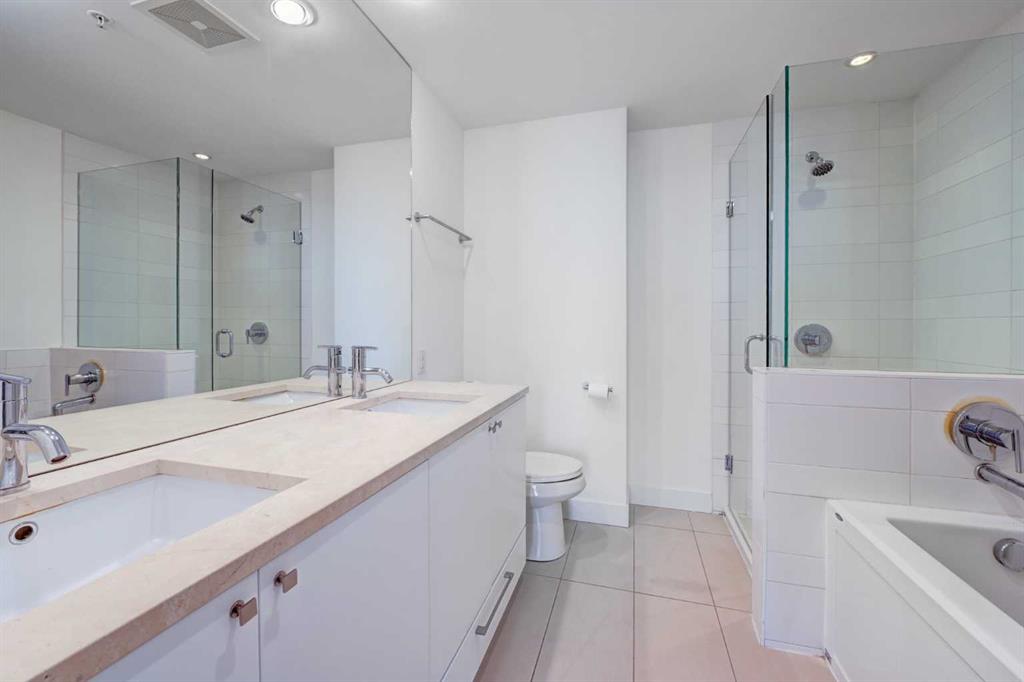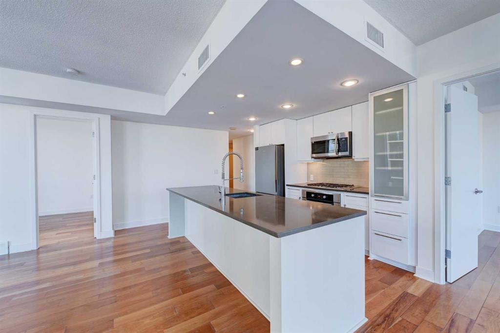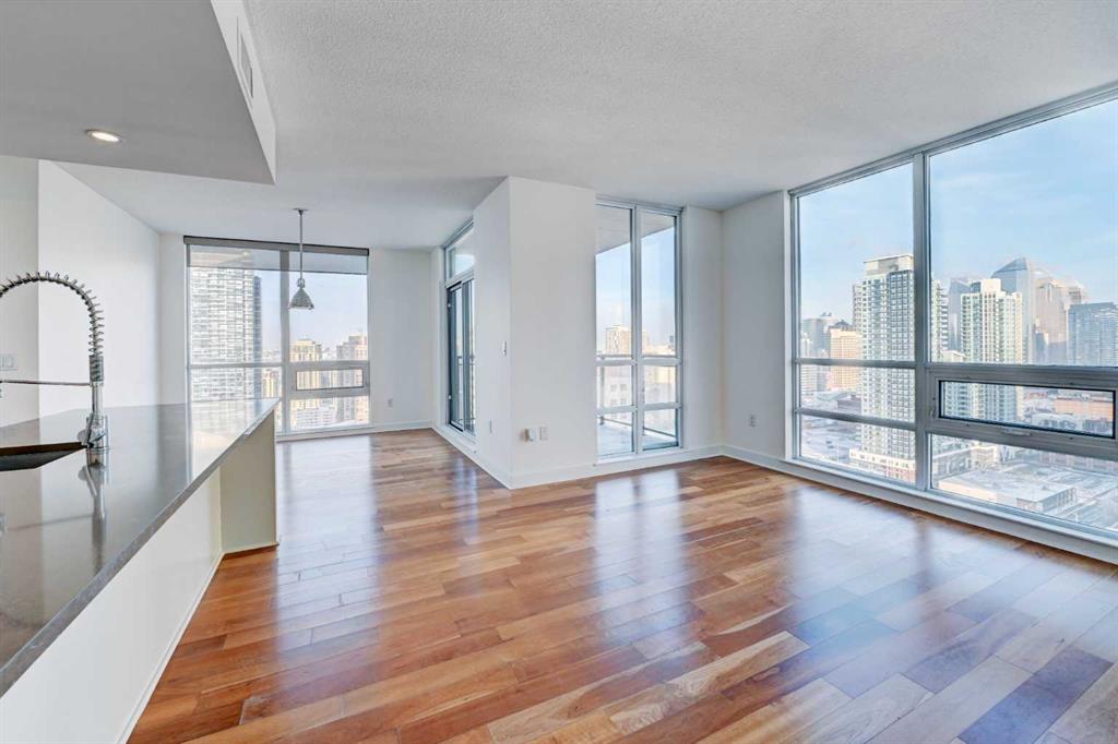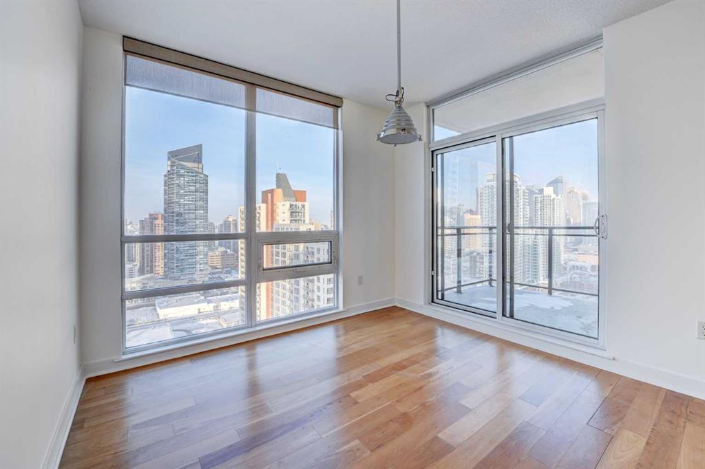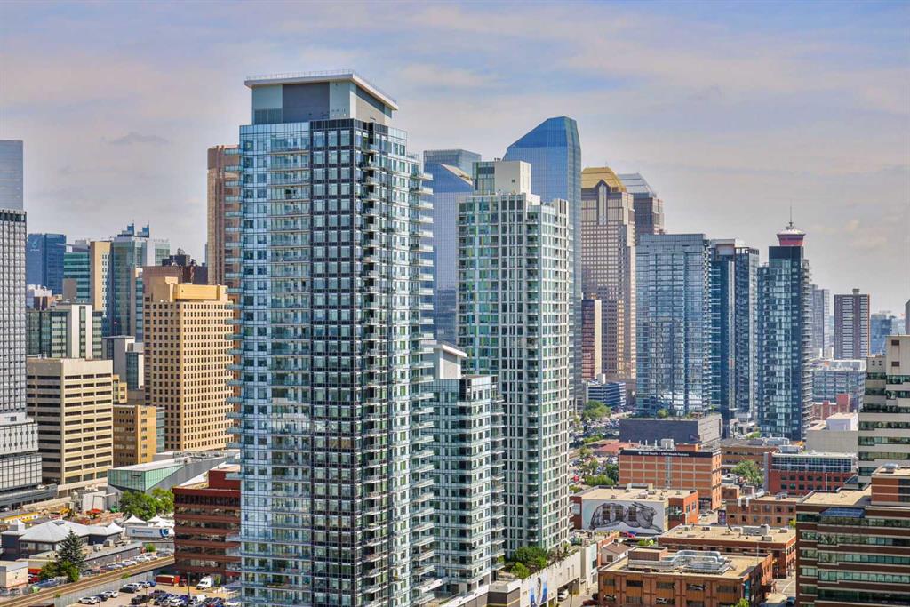 Experience elevated urban living in this stunning sub-penthouse unit on the 24th floor of the Nova Building, featuring one of the most spectacular panoramic NE corner views in the city. This highly coveted floor plan offers 2 bedrooms + den, 2 full bathrooms, titled underground parking, and 2 storage lockers, providing exceptional comfort and convenience. Recently updated throughout, this move-in-ready home has been freshly painted, including ceilings, with new doors and baseboards adding a crisp, modern finish. All kitchen and bathroom cabinets have also been repainted and refinished, enhancing the fresh, modern aesthetic. The open-concept layout features floor-to-ceiling windows, flooding the space with natural light and showcasing the breathtaking skyline. Interior details include luxury wide-plank laminate hardwood flooring, quartz countertops, a massive kitchen island, and brand-new, never-used stainless steel appliances including a fridge, microwave/hood fan, and dishwasher. Perfect for entertaining or day-to-day living, the seamless flow between the kitchen, dining, and living areas makes this home both functional and inviting. The generously sized primary suite offers a true retreat with a spacious walk-through closet leading to a spa-inspired ensuite featuring dual vanities, a soaker tub, and a separate glass shower. The Nova offers premium amenities, including a fully equipped fitness centre, sauna, residents’ lounge/party room, and landscaped courtyard. Located in the heart of the Beltline, you’re just steps to 17th Avenue’s vibrant dining, shopping, and nightlife, with Co-op grocery store right across the street for ultimate convenience. Don’t miss this opportunity to own one of the best units in the building.