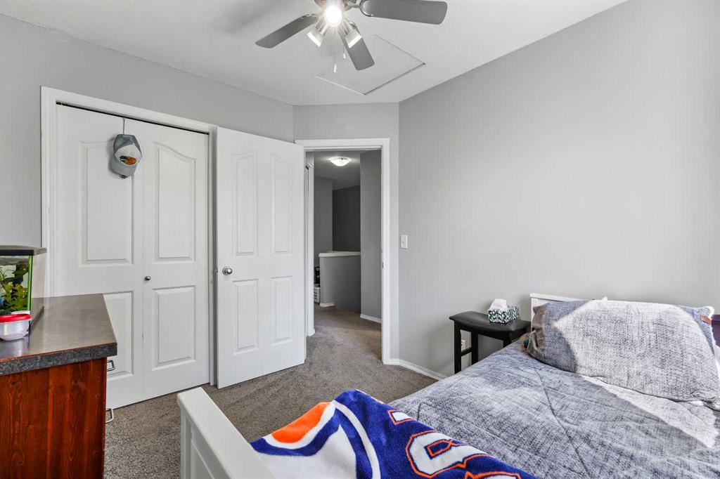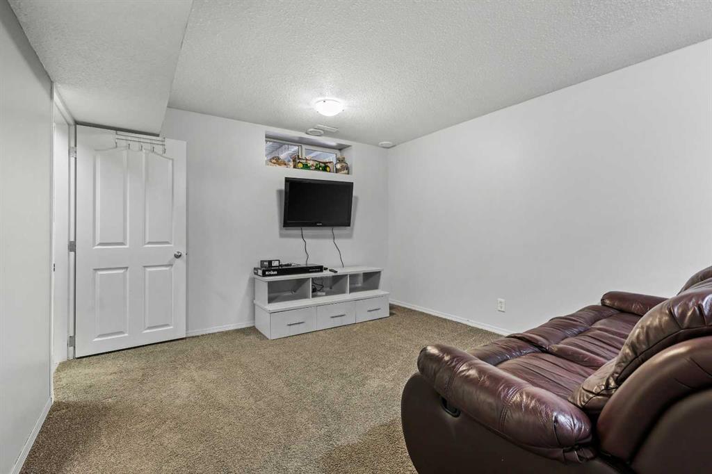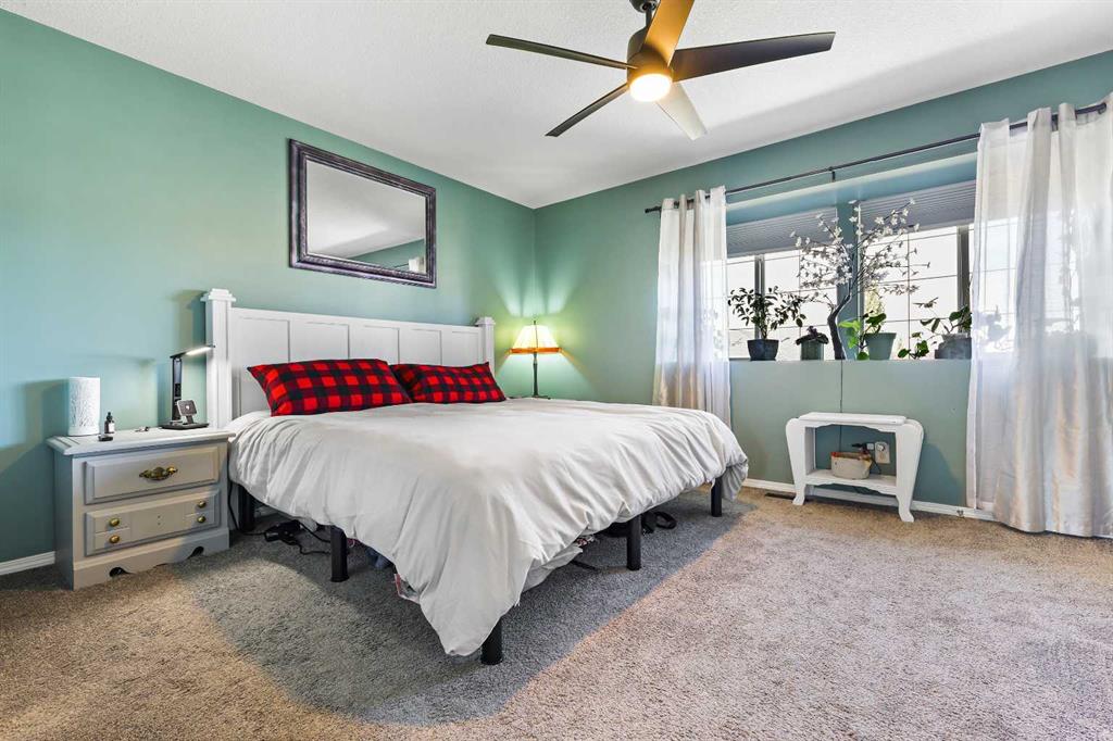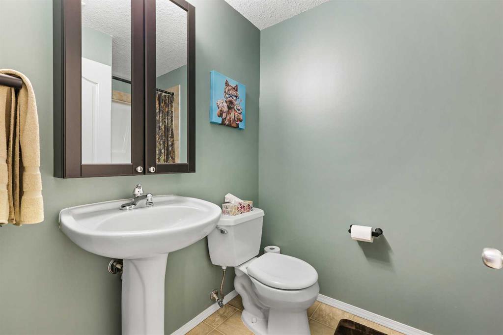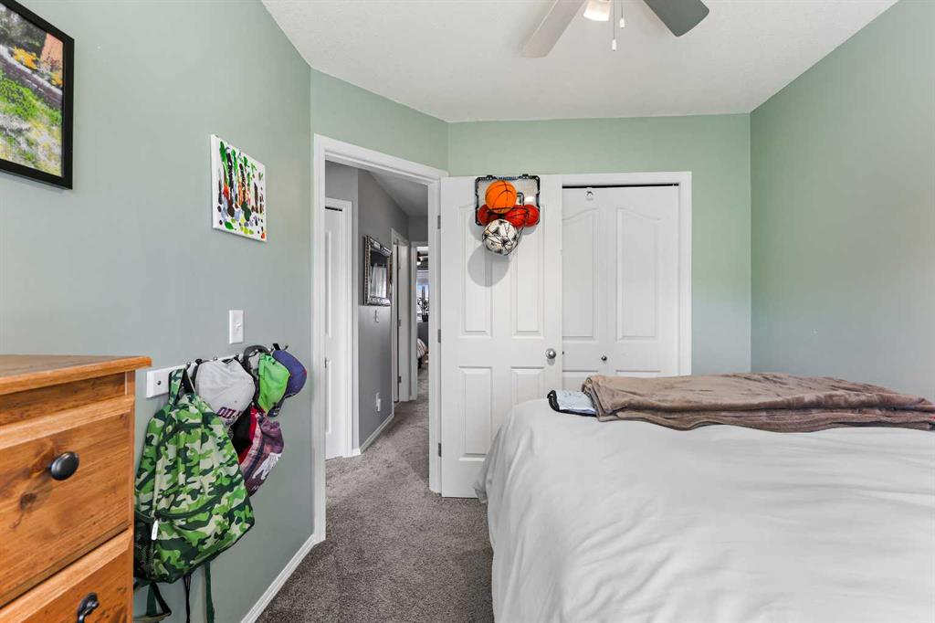 Step into stylish comfort in this beautifully maintained 3-bedroom, 2.5-bath 2-storey townhome located in the heart of family-friendly Luxstone. Boasting over 1,700 sqft of total thoughtfully designed living space with a fully finished basement, this home is the perfect fit for first-time buyers, growing families, downsizers, or savvy investors. The bright and inviting main floor features soaring 9’ ceilings, a large bay window that fills the living room with natural light, modern ceiling fans in both the living and dining areas, and rich laminate floors. The dining space opens to a sun-filled south-facing backyard with your very own private deck backing onto green space and pergola—perfect for summer barbecues or peaceful morning coffees. The refreshed kitchen is a true showstopper with striking navy blue cabinets accented by gold hardware, a sleek white tile backsplash, under-cabinet lighting, and designer granite countertops. A corner pantry, stainless steel appliances, USB-integrated outlets, and a flush eat-up island with added storage make this a modern kitchen ready for everyday function or entertaining. Upstairs, discover three generously sized bedrooms (each equipped with their own ceiling fan), the serene primary suite offers a large walk-in closet and a convenient cheater 4-pc ensuite. The finished basement provides a massive rec room, a full bathroom, separate storage room, and laundry tucked out of the way—ideal for play space, movie nights, or a home gym. Enjoy the two assigned parking stalls, with bonus street parking right in front of the townhome, and a fantastic location just steps from schools, parks, playgrounds, pathways, and everyday amenities. Peace of mind with a BRAND NEW WATER HEATER December 2025! This is your chance to own a move-in ready Airdrie townhome with charm, updates, and unbeatable value!