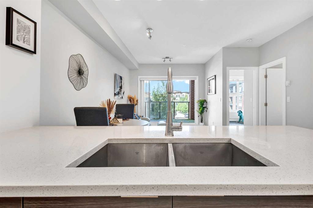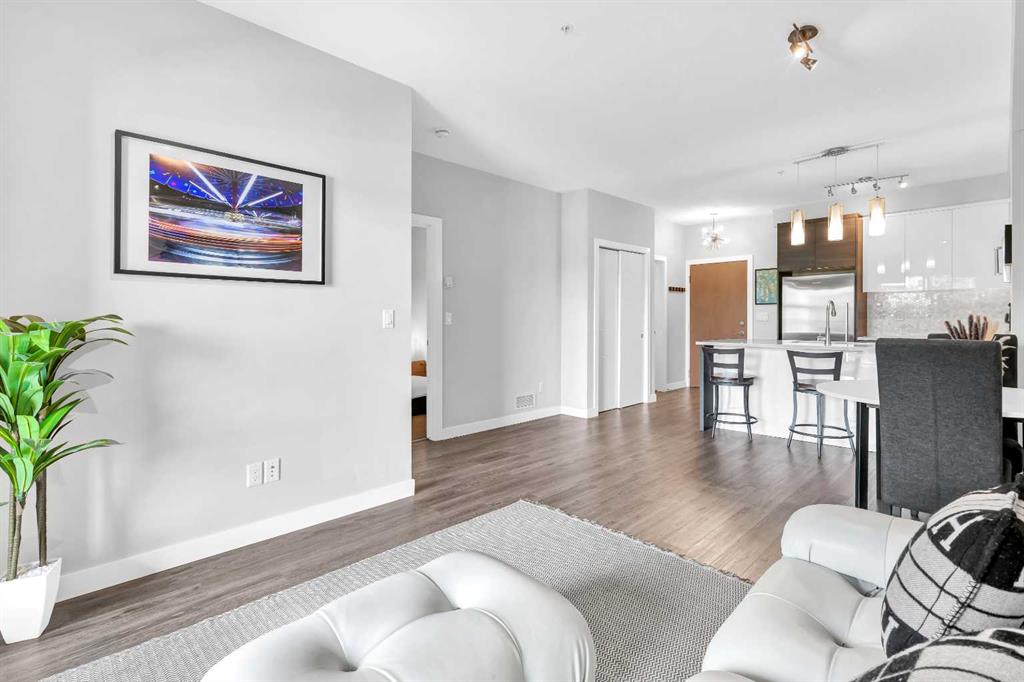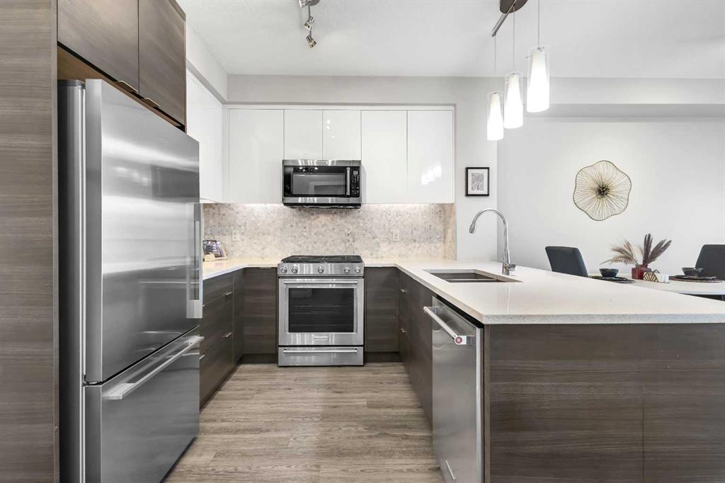 Discover the perfect blend of style and convenience in the highly sought-after SW community of Currie Barracks. This stunning 700+ sq. ft. residence in a prestigious complex offers a sophisticated urban lifestyle, perfect for first-time buyers and savvy investors alike. The heart of this home is a bright, open-concept living area featuring durable laminate flooring and a seamless flow. Natural light pours in through large sliding glass doors that lead to your spacious private balcony - an ideal spot for morning coffee or evening relaxation. Prepare to be impressed by the sleek, modern kitchen featuring contemporary cabinetry, stylish tile backsplash, premium stainless-steel appliances, elegant quartz countertops and a large kitchen island. There are two generous bedrooms: Including a primary suite complete with a spacious walk-in closet. A refined 5-piece bathroom and dedicated laundry area provide convenience for all occupants. Enjoy the perks of a well-maintained complex that include access to a car wash bay, secure bicycle storage, and ample visitor parking for your guests. Located in one of Calgary’s most vibrant neighborhoods, you are minutes away from the trendy shops and dining of Marda Loop. A quick drive to Downtown Calgary and easy access to public transit. Walking distance to Mount Royal University and top-rated local schools. Experience the best of SW Calgary living. Schedule your private viewing today!
