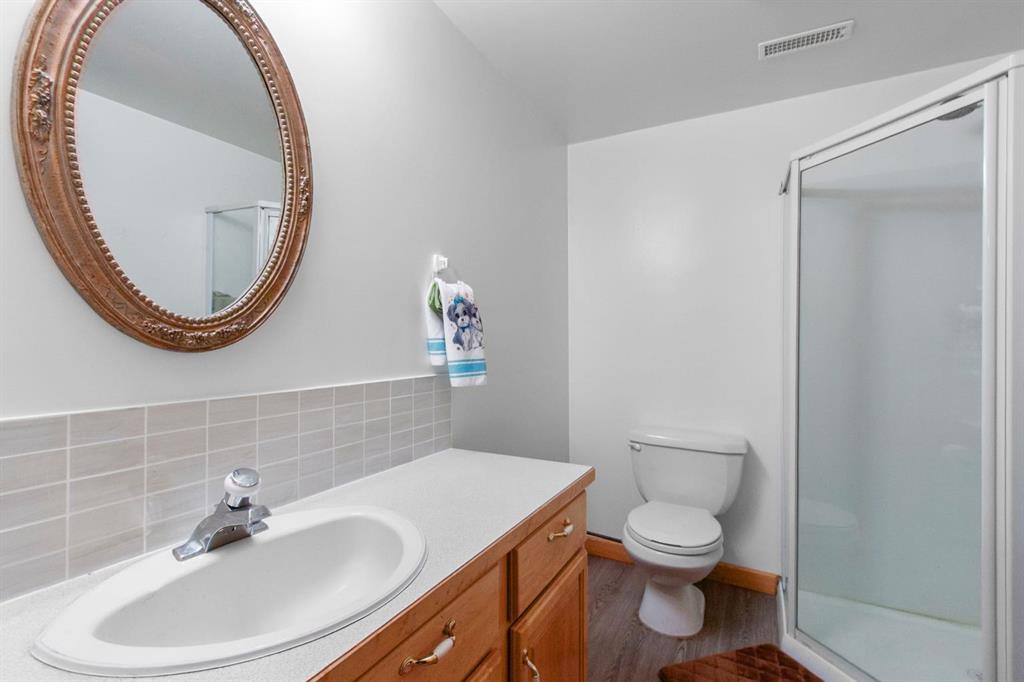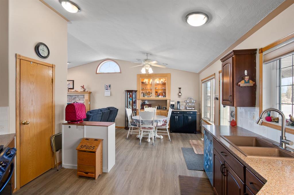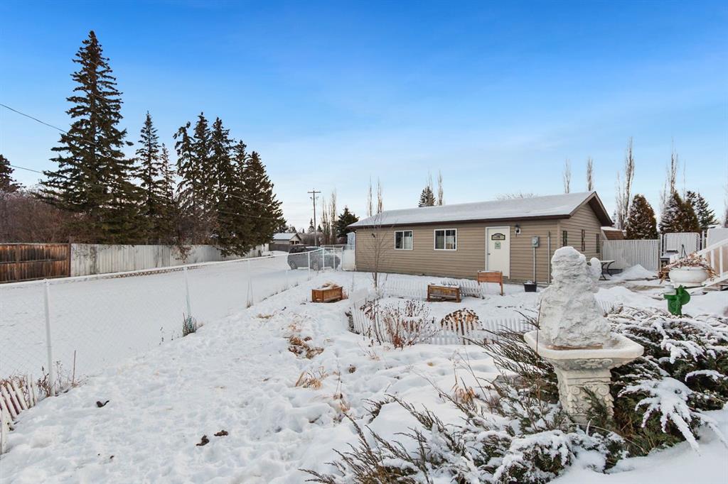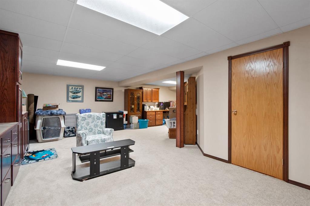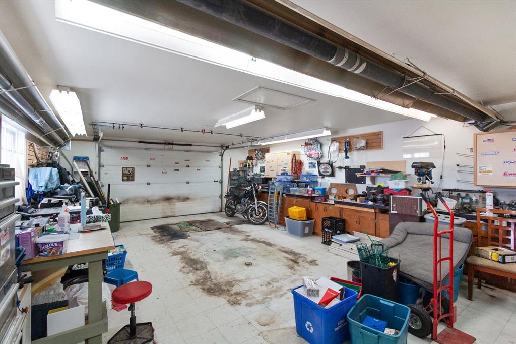 Welcome to 107 Monica Bay, a well cared for 4-bedroom bungalow tucked away on a large lot in a quiet cul de sac, complete with two garages! From the covered front porch, step into a warm and inviting living room centred around a wood burning fireplace with a maple mantle, creating a cozy focal point for everyday living. The open and functional kitchen is designed for both cooking and connection, featuring a 5-burner gas stove, a newer stainless steel dishwasher, ample cabinetry, and a full-size refrigerator. The main floor includes a spacious primary bedroom with walk-in closet and private ensuite, a second bedroom ideal for guests or a home office, a 4-piece bathroom with a walk-in tub, and the added convenience of main-floor laundry. The fully developed lower level offers a massive recreation room with built-in desks and storage, two additional bedrooms, and generous storage throughout, making it perfect for families, hobbies, or flexible work-from-home space. Additionally, the Attic insulation has been recently upgraded to R77 equivalent. Outside, the beautifully landscaped backyard is made for relaxation and entertaining, featuring a covered composite deck with gas BBQ hookup, private patio area, and plenty of room to enjoy the outdoors. Car lovers and hobbyists will appreciate the heated 20’ x 35’ detached garage/workshop with a separate storage room, in addition to the attached garage, offering exceptional parking, storage, and workspace options. Situated in the welcoming community of Carstairs, this home offers small-town charm with schools, parks, and amenities close by, all while being just 40 minutes from Calgary. Whether you’re raising a family, downsizing, or looking for a quieter pace without giving up city access, this property checks all the boxes.
