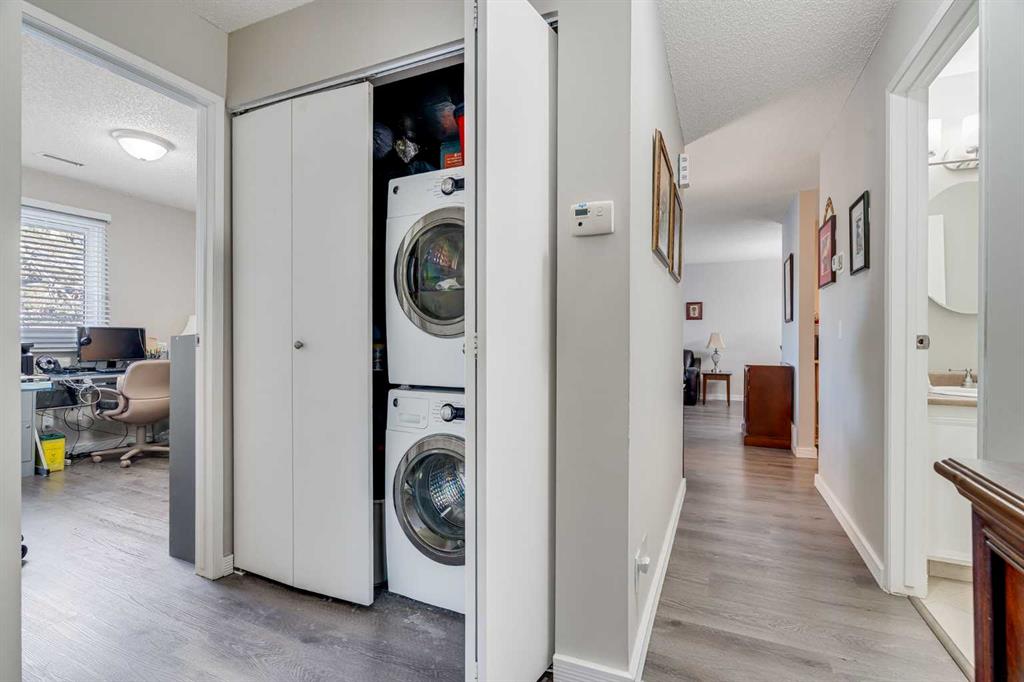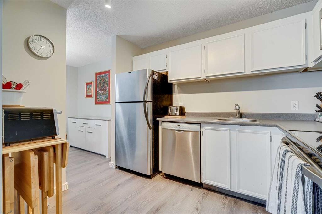 This beautifully updated upper-level end unit offers the space, layout, and lifestyle today’s families are looking for—all in a highly walkable, well-connected community. Thoughtful upgrades, wide-plank flooring, and a soft neutral colour palette create a warm and welcoming atmosphere throughout the home. The open-concept layout is ideal for both everyday living and entertaining, with seamless sightlines connecting the kitchen, dining area, and living room. The cozy living room fireplace sets the tone for relaxed evenings, while the dining area comfortably brings everyone together. The updated kitchen features crisp white cabinetry, stainless steel appliances, and generous counter space. All three bedrooms are well-sized and include their own walk-in closets—an ideal setup for organized family living. The primary bedroom is complete with a private 2-piece ensuite, eliminating the morning rush. A full 4-piece bathroom and convenient in-suite laundry add everyday practicality. Step outside to your private entry patio—perfect for casual barbecues, morning coffee, or unwinding after a long day. Additional highlights include heated underground parking with bike storage, along with ample visitor parking throughout the complex. This well-managed, pet-friendly community is ideally located close to shopping, transit, schools, and major routes including Stoney Trail, Anderson Road, and Southland Drive. Outdoor enthusiasts will love the nearby Braeside tennis courts, soccer fields, baseball diamonds, playgrounds, and scenic pathways leading to the Glenmore Reservoir and Weaselhead. Blending comfort, functionality, and an unbeatable location, this move-in-ready home delivers the space families need and the lifestyle they want.