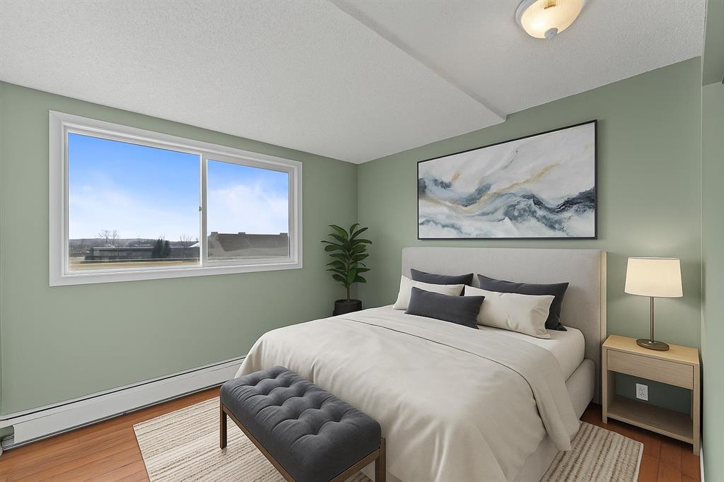 Welcome to this 2 Bedroom move-in ready condo located in the sought-after Tower Hill community of Okotoks. Offering over 900 sq. ft. of bright, comfortable living space, this rare, 2 bedroom south-facing unit captures mountain views from your private balcony — the perfect spot to relax and enjoy the Southern Alberta sunshine. Inside, you’ll find a freshly painted interior and a modern, recently renovated bathroom completed by Bathroom Fitters. The open-concept layout provides a seamless flow between the living, dining, and kitchen areas, creating a warm and inviting atmosphere. Both bedrooms are generously sized with the primary offering a great walk in closest and the second bedroom is Ideal for guests, a home office or maybe work out room. This quiet adult building features secure underground parking and is professionally managed, ensuring peace of mind and easy living. With no dogs permitted, it’s ideal for those seeking a low-maintenance and tranquil lifestyle. Whether you’re a first-time buyer, downsizing, or looking for a solid investment opportunity, this condo checks all the boxes — spacious, updated, and ready to move in. Conveniently located close to parks, walking paths, shopping, and all of Okotoks amenities. Book your private showing today!
