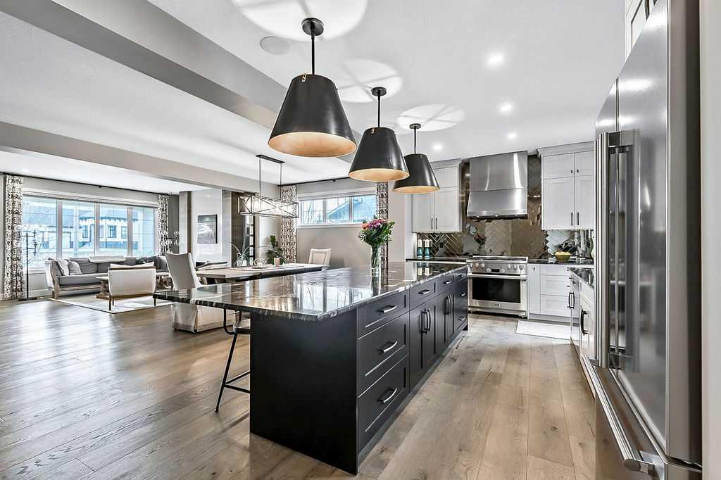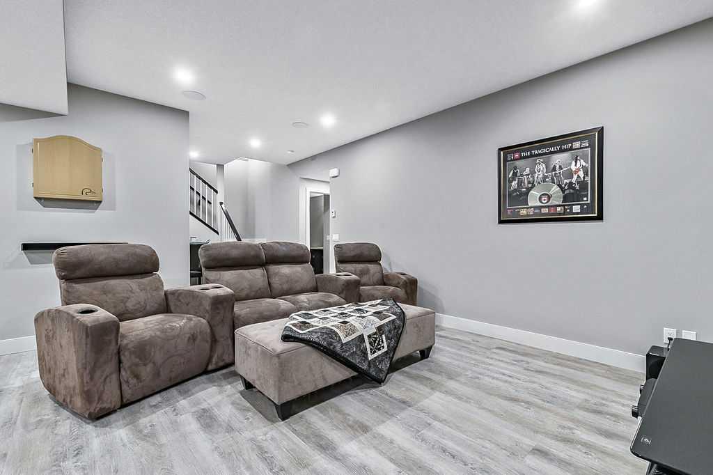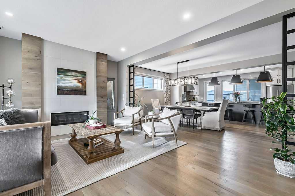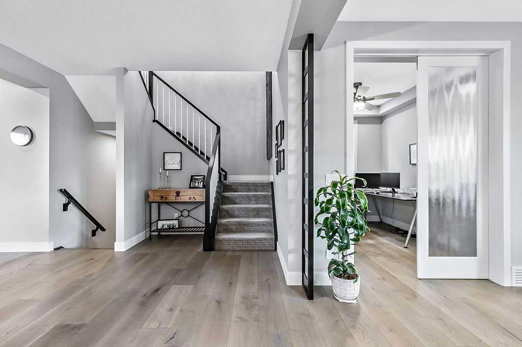 Welcome to this stunning, METICULOUSLY CARED FOR home in the one of a kind Mickelson Golf Course and lake community of Harmony. Situated steps from a greenspace, this home has great curb appeal and captures your attention with a full front verandah that invites you to sit and enjoy the serene surroundings. Step inside to a bright and sunny open floor plan that creates an amazing first impression. The breathtaking kitchen features high end appliances including a heavy duty Miele hood fan and a Miele 6-burner gas stove with gas oven. The trendy white cabinetry, a huge island and granite countertops add a touch of elegance to this functional space, perfect for any home chef. Throughout the main floor, beautiful hardwood floors lead you to a cozy den, ideal for a home office or quiet retreat. The spacious living room is a true highlight, showcasing a fireplace feature wall that serves as the perfect centerpiece for gatherings. Upstairs, you'll find a great sized bonus room, a convenient laundry room and three great sized bedrooms. The extra large primary bedroom is a luxurious escape, complete with a spa inspired ensuite and a generous walk in closet. The fully developed basement offers even more living space and includes a fully SELF CONTAINED FOURTH BEDROOM WITH ITS OWN LAUNDRY, walk in closet and 4 piece ensuite; also a 2 piece bathroom and huge games/family room, perfect for entertaining or relaxing with loved ones. With nearly 2,800 square feet of thoughtfully designed space, this FOUR BEDRROM FAMILY HOME features a floor plan that effortlessly accommodates a variety of lifestyles. Move in and enjoy the incredible amenities Harmony has to offer including two private lakes, miles of beautiful pathways, parks, playgrounds, the future Village Centre, a WORLD CLASS MICKELSON GOLF COURSE and quick easy access to the mountains.