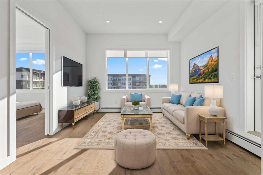 Welcome to this stunning 2-bedroom, 1-bathroom apartment on the 4th floor of the desirable Cavallo development, offering the perfect combination of modern living and convenience. The open-concept floor plan features high ceilings, large windows, and an abundance of natural light, creating a spacious and inviting atmosphere. The gourmet kitchen boasts premium cabinetry, stainless steel appliances, and sleek Quartz countertops. You'll also enjoy the convenience of in-suite laundry, while the large balcony with a gas line provides the ideal space for outdoor relaxation or entertaining. Cavallo offers residents exceptional amenities, including a pet spa, fitness center, entertainment lounge, visitor parking, and EV charging stations, ensuring comfort and convenience at every turn. Located just steps away from essential amenities like grocery stores, restaurants, banks, and medical offices, and only minutes from the airport, shopping malls, and major grocery stores, this home offers a prime location with easy access to Stoney Trail, connecting you to all corners of Calgary. Whether you're looking for a stylish home to call your own or a comfortable space with easy access to the city's best offerings, this apartment is the perfect fit. Checkout 3D tour…!!!