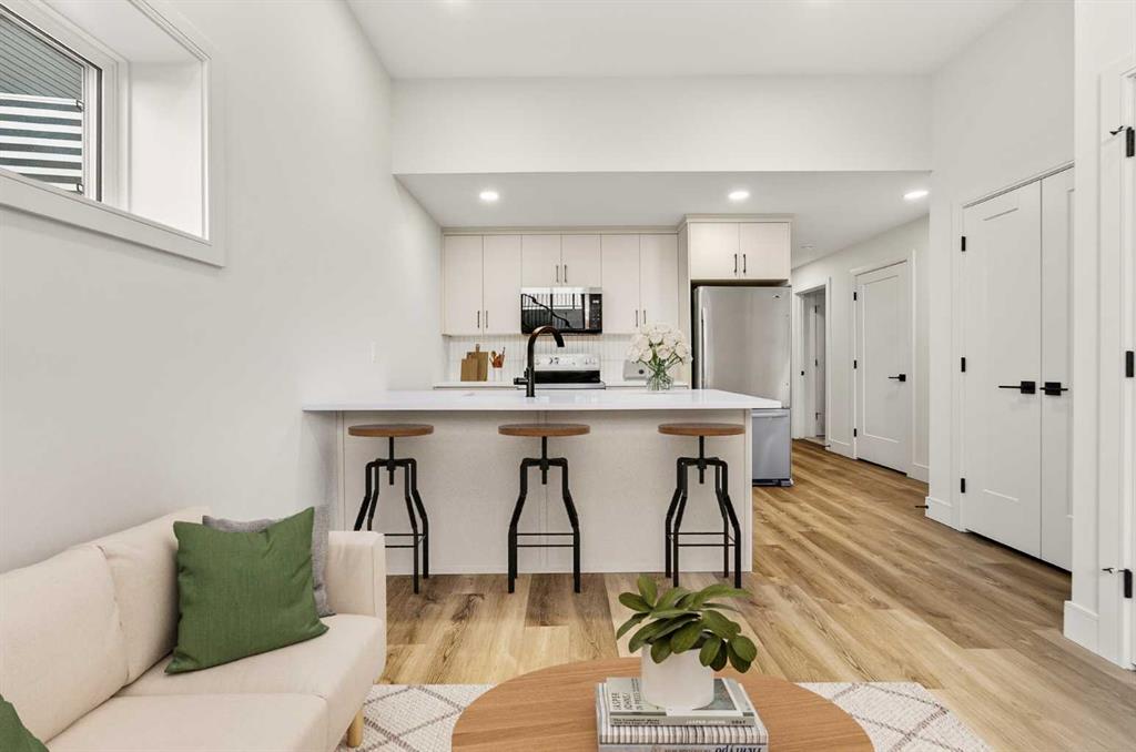 This is one of those homes where the details quietly do the heavy lifting. A legal suite, a proper main floor office, dedicated laundry, high-end appliances, ample parking, and front landscaping with wing fencing already included — all wrapped into a clean, modern build in one of Coaldale’s most forward-thinking new communities. Located in Malloy Landing, directly across from the SHIFT Community Centre and Coaldale Prairie Winds Secondary School, the setting offers a level of day-to-day convenience that’s hard to overstate, whether it’s walking the kids to school or squeezing in a workout without ever touching the car keys. Built by Stranville Living Master Builder, this home showcases the ever-popular Kendrick floor plan and the refined craftsmanship Stranville is known for. The main living area immediately makes an impression with soaring 11-foot ceilings and expansive windows that flood the space with natural light, giving the open-concept layout a bright, elevated feel while still remaining comfortable and functional. Just a few steps up, the kitchen and dining area feel intentionally designed for real life, blending style with practicality. Stranville’s signature panel-ready Fisher & Paykel refrigerator, a panelled dishwasher, sleek induction cooktop, quartz countertops, and a spacious pantry all come together in a space that feels polished without being overdone. The rear of the property features a triple-car parking pad, offering flexibility for multiple vehicles, guests, or future garage development. The main floor office is another standout, featuring nearly floor-to-ceiling windows that create an inspiring, light-filled workspace that actually makes working from home enjoyable rather than isolating. It’s a space that feels purposeful and well thought out, not simply added for the sake of a checklist. Upstairs, the second level offers three generous bedrooms, including a well-appointed primary retreat. The ensuite features a walk-in shower and a spacious walk-in closet that connects directly to the dedicated laundry room — a smart layout detail that makes everyday routines more efficient. The fully developed lower level includes a legal two-bedroom suite with its own modern kitchen finished with quartz countertops, making it an excellent option for extended family, guests, or additional revenue potential. Outside, the front yard will be completed with clean, low-maintenance xeriscape landscaping, and wing fencing is included, ensuring the exterior feels finished and cohesive from the moment you move in. This home brings together smart design, quality construction, and a location that genuinely supports an easier lifestyle, all within one of Coaldale’s most exciting new neighbourhoods. This home is virtually staged. GST is included in the purchase price and the property comes with a 10-year new home warranty.