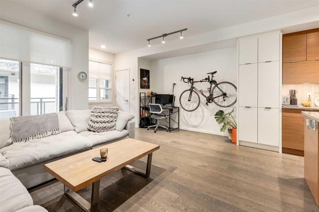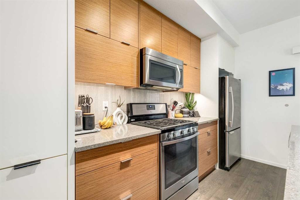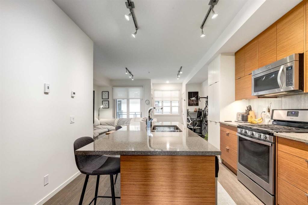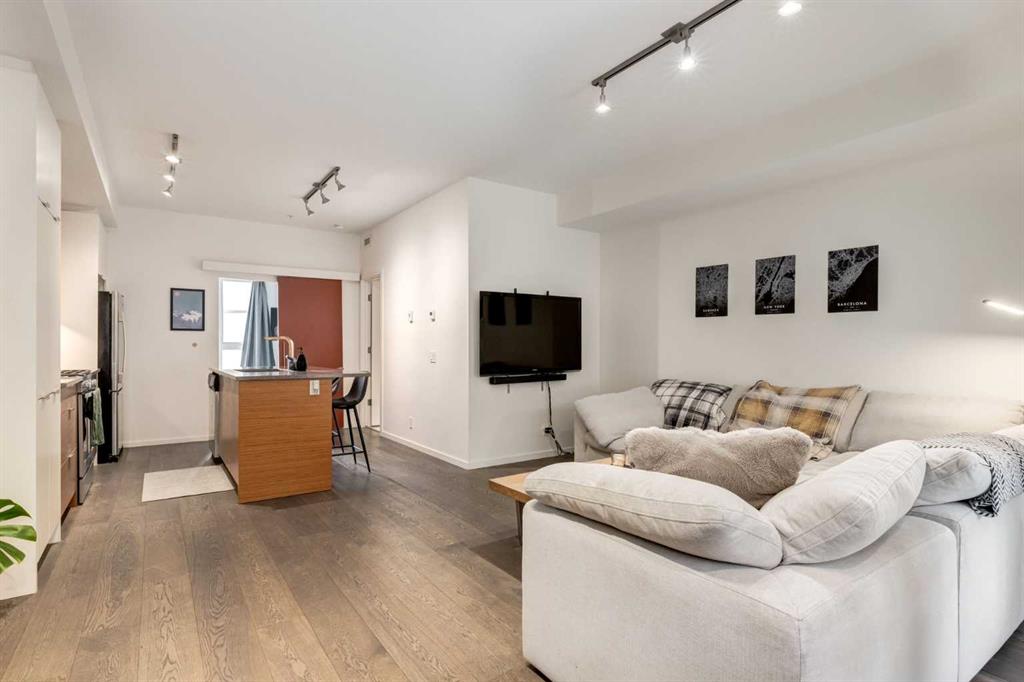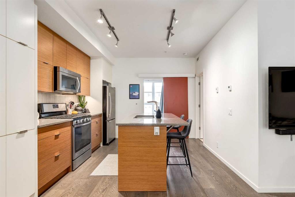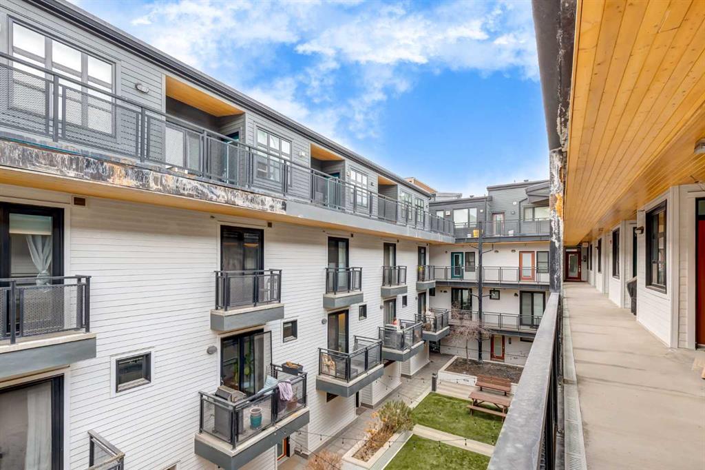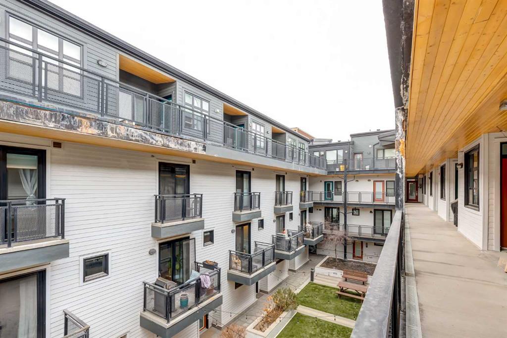 Discover urban living at its finest in this stylish one-bedroom, one-bathroom condo situated in the heart of Lower Mount Royal, this residence offers unparalleled access to the vibrant 17th Avenue, renowned for its eclectic mix of shops, restaurants, and entertainment venues.? Designed by the acclaimed Sturgess Architecture and constructed by Avi Urban in 2014, this condo boasts contemporary aesthetics and quality craftsmanship. The open-concept layout is accentuated by 9-foot ceilings and oak plank hardwood flooring, creating a bright and inviting atmosphere. The living and dining areas seamlessly flow into the modern kitchen, which features stainless steel appliances, sleek cabinetry, and ample counter space—perfect for both everyday living and entertaining.? One of the standout features of this unit is its direct access to an expansive communal terrace overlooking a beautifully landscaped courtyard. This unique outdoor space offers a serene retreat in the midst of the city, ideal for relaxation or social gatherings. Residents will appreciate the secure building access and the convenience of nearby public transportation options, making commuting a breeze. Experience the perfect blend of modern design and urban convenience in this exceptional Lower Mount Royal condo.