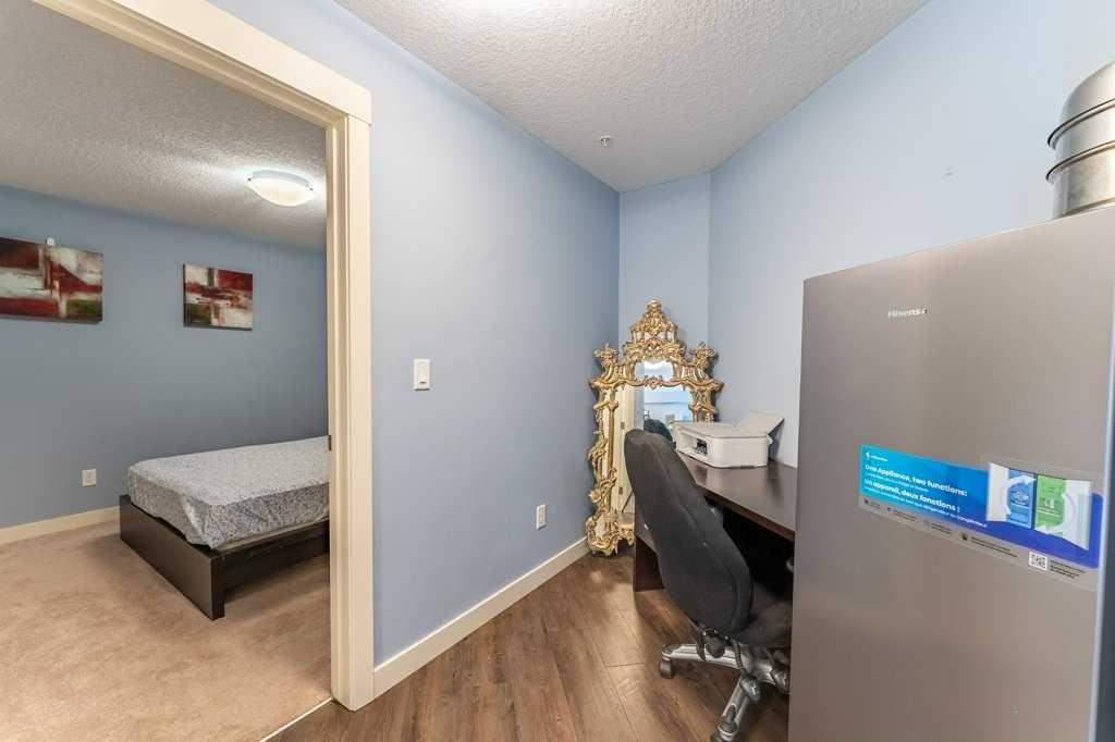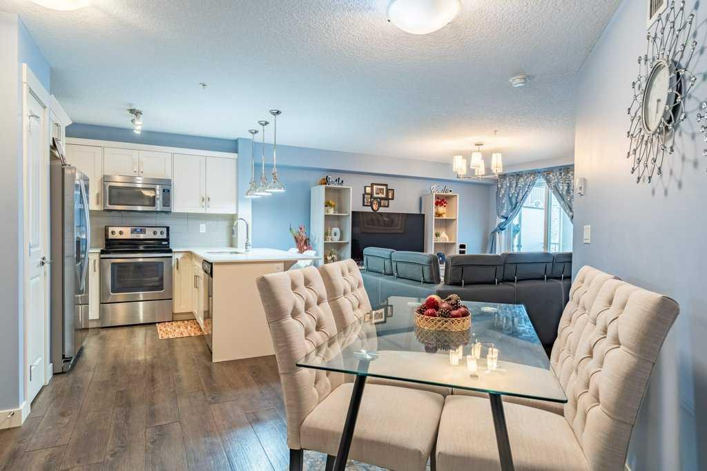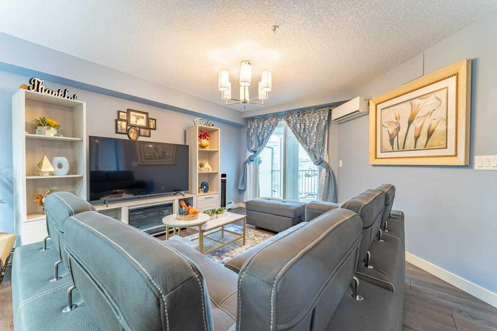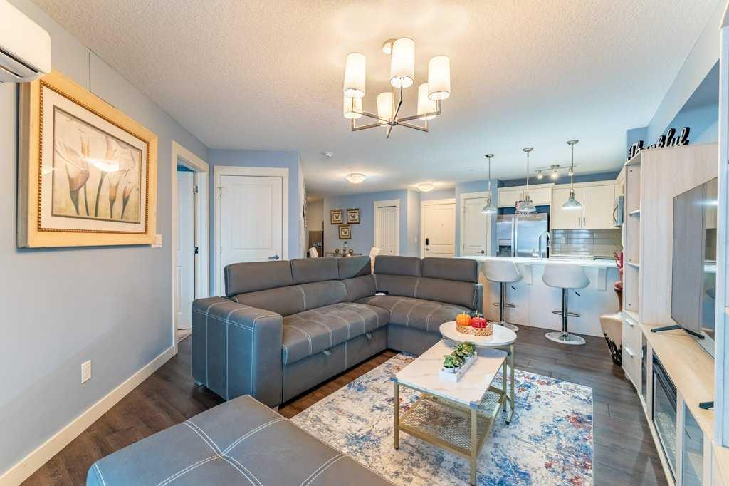 Welcome home to this bright and spacious 2-bedroom + den suite featuring an open-concept floor plan, sunny south exposure, and true move-in-ready condition. Located in one of Calgary's best communities - Auburn Bay featuring LAKE ACCESS that offers a wide range of fantastic outdoor activities for both Summer & Winter and proximity to South Health Campus, shopping and restaurants. Thoughtfully designed with durable vinyl plank flooring, in-suite air conditioning, and abundant natural light throughout The modern kitchen offers ample cabinetry, stainless steel appliances, quartz countertops, and a functional peninsula with breakfast bar, seamlessly overlooking the dining and living areas—perfect for both everyday living and entertaining. The living room opens directly onto an extra-large private balcony, extending your living space outdoors. The primary bedroom includes a walk-in closet and a 3-piece ensuite with stand-up shower. A generously sized second bedroom, located next to the main bath, is ideal for guests or a roommate. A versatile den—perfect for a home office—along with in-suite laundry completes this well-appointed home. Additional features include one titled underground parking stall with storage locker in a heated parkade. The Auburn Walk complex is ideally located just steps from Auburn Station, offering a wide selection of shops, restaurants, pubs, and everyday amenities. The nearby BRT Route 302 provides direct access to downtown, and the home is within walking distance of the future Green Line LRT. An exceptional opportunity—don’t miss out!