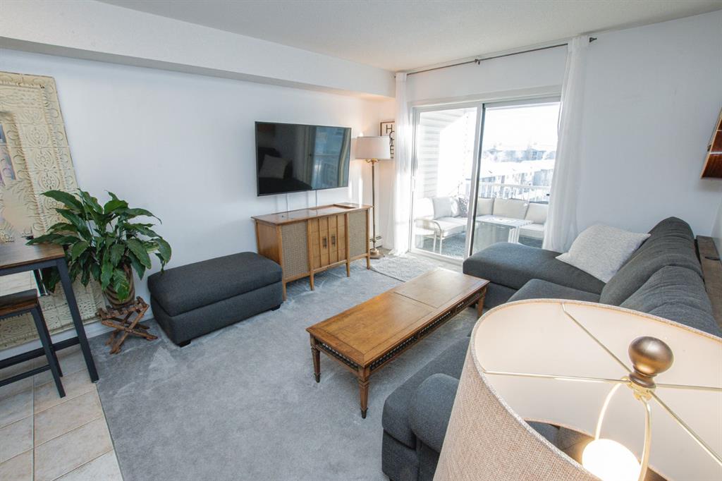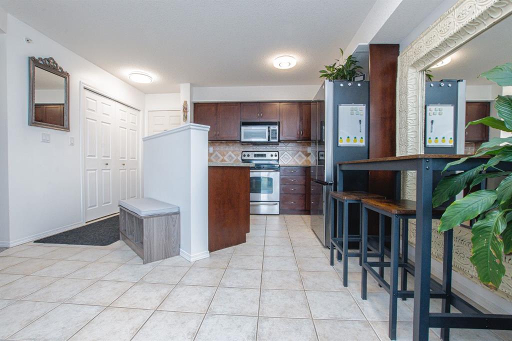 Experience a modern, low-maintenance lifestyle at the Axxess Condominiums close to all amenities, shopping and more! This well maintained 2 bedroom, 2 bathroom home is on the fourth level boasting fresh paint and newer carpets (August 2025). The bright, open concept main living space is ideal for both everyday living and entertaining, filled with natural light and opening onto a private balcony just off the living room. Your kitchen features dark cabinetry, plenty of cupboards & counter space and stainless steel appliances including a newer fridge replaced only a couple months ago.. The primary suite is a peaceful retreat, featuring a walk-through closet, an updated 4-piece ensuite with hardwired electrical towel warmer, and its own separate balcony. A second bedroom, an additional updated full bathroom, in-suite laundry, and a dedicated storage room with built-in shelving provide exceptional functionality. This home also includes the convenience of one underground parking stall and one outdoor stall, while the building offers a fitness centre - perfect for supporting an active, modern lifestyle. Book your showing today!