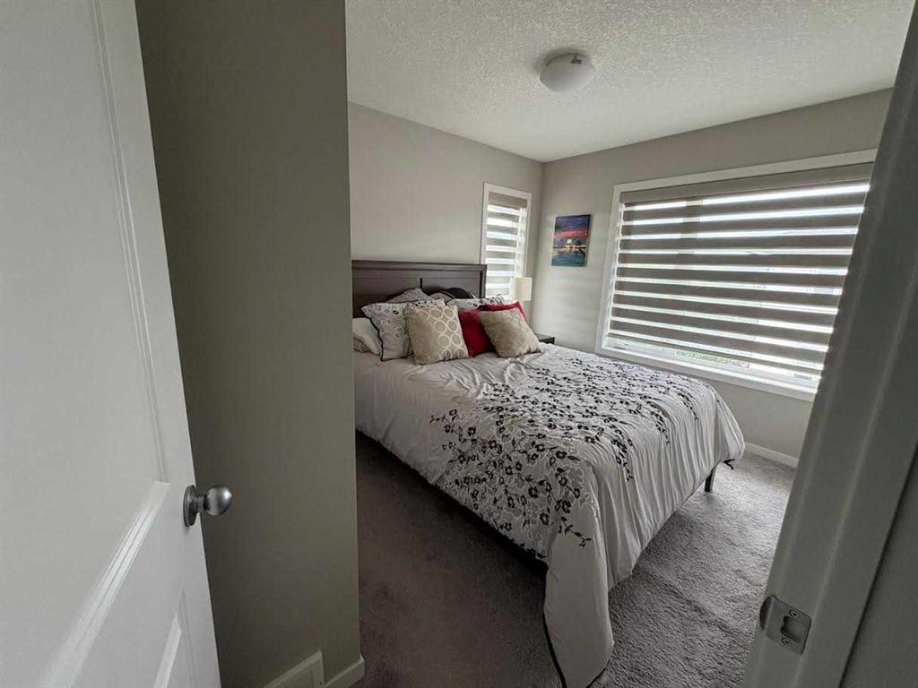 Welcome to this Beautifully Upgraded End Unit Townhouse in the Heart of Evanston! This stunning 3-bedroom + den, 2.5-bathroom townhouse offers 1,574 sq.ft. of thoughtfully designed living space with an attached double garage.. Featuring numerous builder upgrades, this end unit is filled with natural light and modern finishes throughout. The ground level welcomes you with a spacious foyer, a versatile den perfect for a home office or flex space, and direct access to the double garage. Upstairs, you'll find an open-concept main floor featuring a stylish kitchen with granite countertops, modern cabinetry, stainless steel appliances, and a central island—ideal for cooking and entertaining. The bright living and dining areas offer access to a private balcony, and a convenient 2-piece powder room completes the level. The top floor hosts three generously sized bedrooms, including a spacious primary suite with a walk-in closet and a private 3-piece ensuite. Two additional bedrooms and a full 4-piece bath provide ample space for family or guests. Additional features include upgraded finishes throughout, low-maintenance living, and a fantastic location close to schools, parks, shopping, transit, and easy access to Stoney Trail. Whether you're a first-time buyer, growing family, or investor, this home offers the perfect blend of style, space, and convenience. Don’t miss out—schedule your private showing with your favourite Realtor today!
