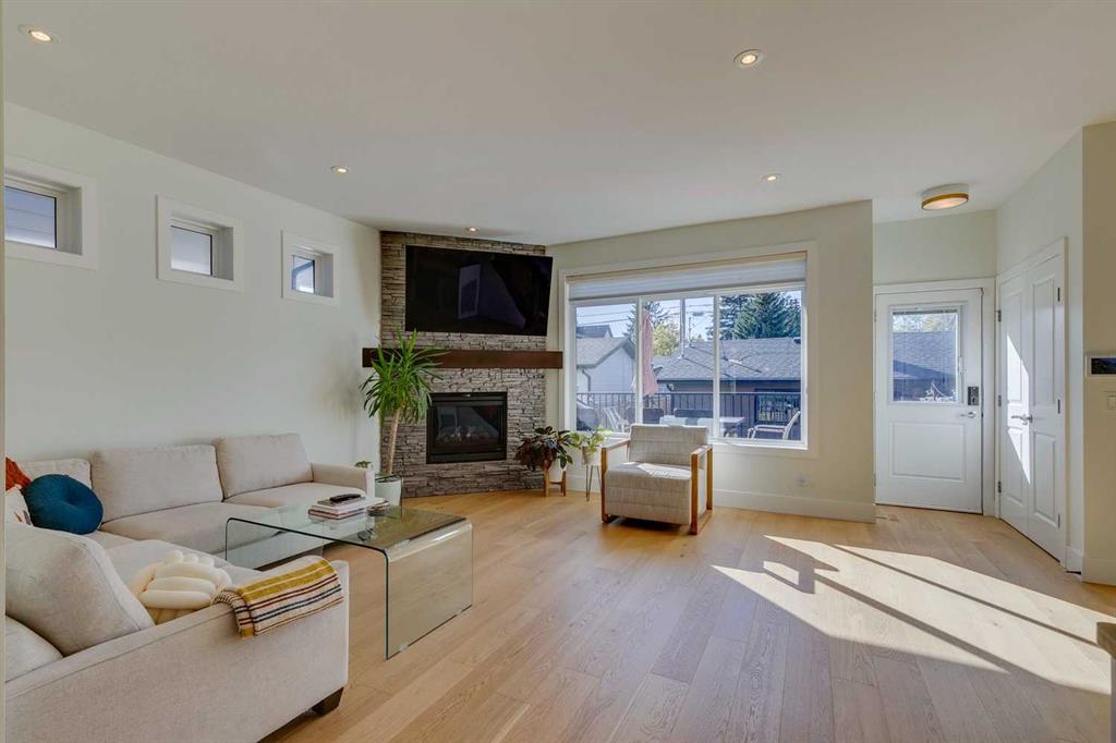 Welcome to this beautifully updated, move-in ready semi-detached home in the heart of Glenbrook, offering the perfect blend of space, comfort, and location. With 1,827 sq ft above grade plus an additional 825 sq ft of fully finished basement, this 4-bedroom, 4-bathroom home is ideal for families or professionals seeking both functionality and style. Recent upgrades provide peace of mind and modern appeal, including fresh paint throughout (Aug 2025), new hardwood flooring on the main level (2025), central air conditioning (2022), water softener (2022), and LeafFilter gutter protection (2022). The bright and welcoming main floor features a spacious dining area with a large picture window overlooking green space and a schoolyard across the street. The gourmet kitchen is a true standout with granite countertops, gas stove, stainless steel appliances, central island, a brand-new dishwasher, and a generous walk-in pantry—perfect for cooking and entertaining. The cozy living room with a gas fireplace opens onto a sun-filled west-facing deck and a low-maintenance backyard with artificial turf, ideal for relaxing or hosting guests. Upstairs, the west-facing primary retreat is a highlight, complete with a large walk-in closet and a spa-inspired ensuite featuring dual sinks, a soaking tub, and a separate shower. Two additional bedrooms, a full bathroom, and convenient upper-floor laundry complete this level. The fully finished basement expands your living space with high ceilings, a spacious recreation room with a built-in bar cabinet, a large fourth bedroom, a full bathroom, and plenty of storage. Pride of ownership is evident throughout. The location is exceptional—steps from green space, minutes to shopping, restaurants, and amenities, and offering quick access west for easy mountain getaways. Enjoy sunny afternoons in the backyard and the convenience of an established, family-friendly community.