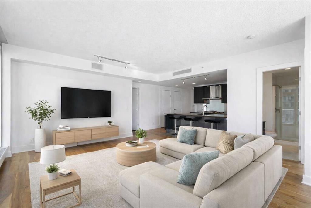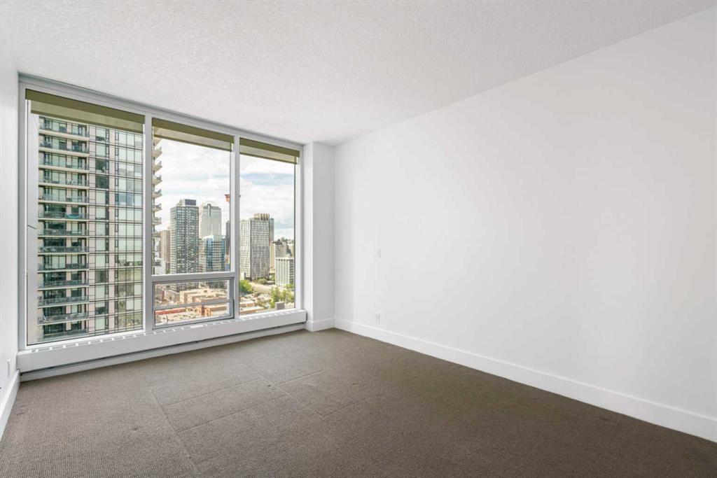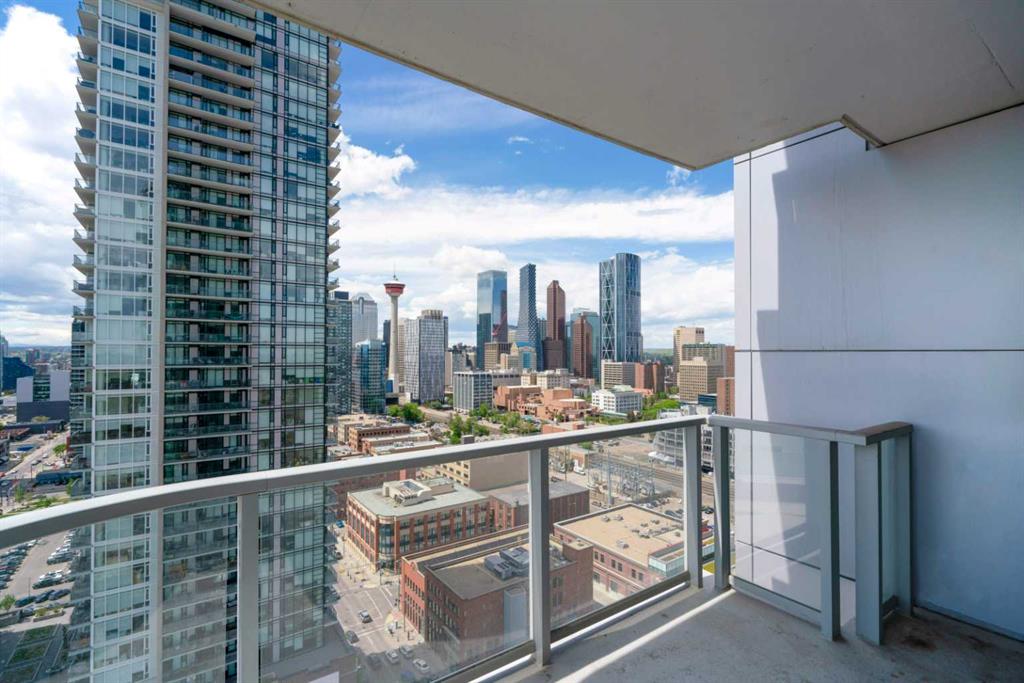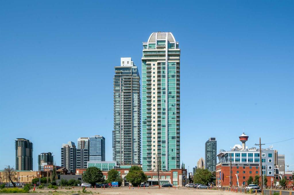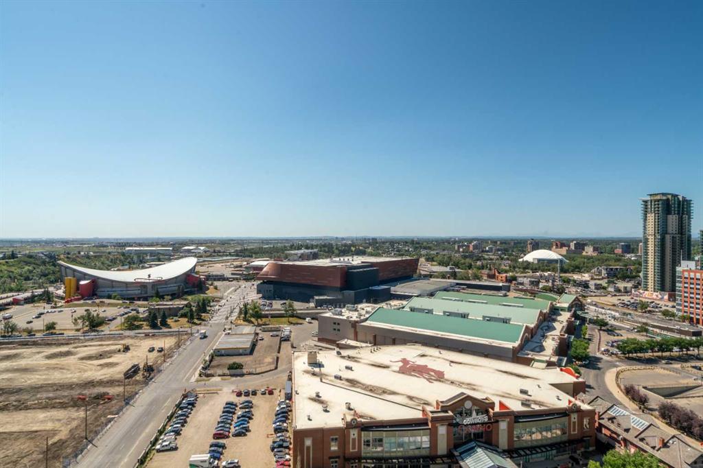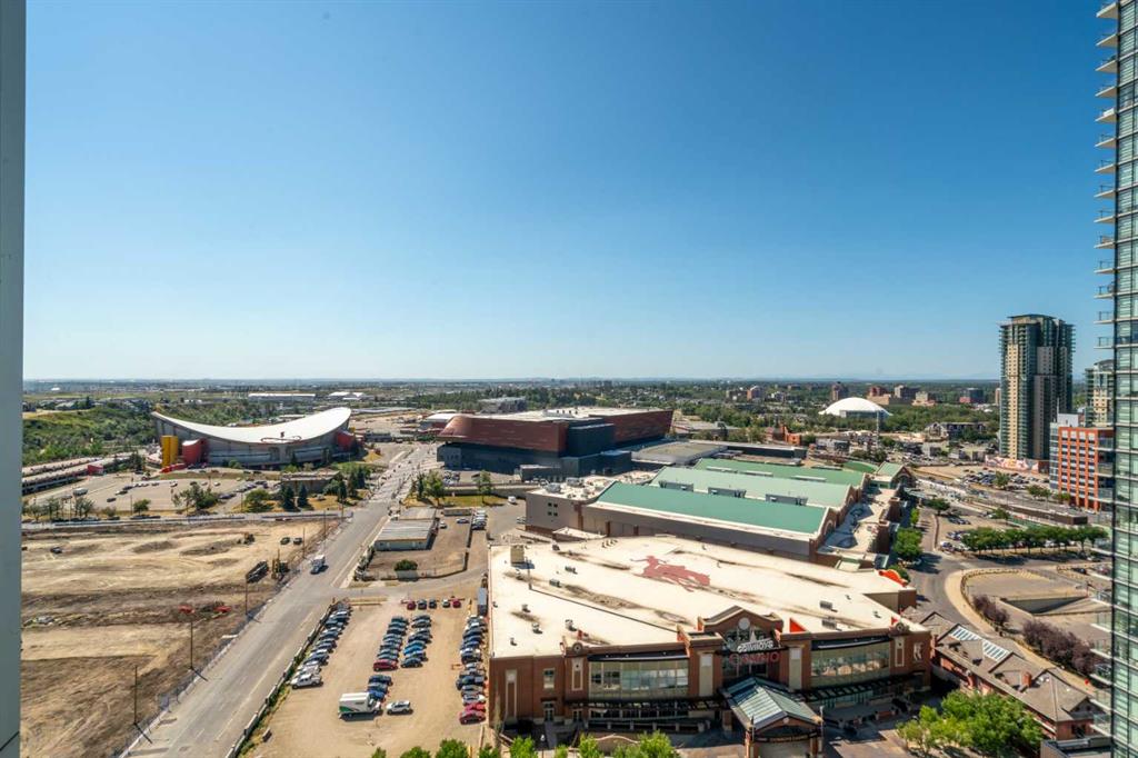 Experience elevated inner-city living in this northwest-facing 2 bedroom, 2 bathroom residence in the prestigious Arriva building, perfectly positioned near the future Flames arena and Calgary’s evolving entertainment district. With unobstructed downtown skyline and mountain views from every room, this home delivers a front-row seat to the city’s most iconic scenery. Designed with both functionality and flow in mind, the spacious open-concept living, dining, and kitchen area is ideal for entertaining or everyday living. Floor-to-ceiling windows flood the space with natural light while framing dramatic city views day and night. The sleek, modern kitchen features expansive quartz countertops, integrated Miele appliances with a 5-burner gas range, and Italian Snaidero cabinetry, offering both style and exceptional storage. The thoughtfully separated bedroom layout provides maximum privacy, making it ideal for professionals, roommates, or guests. The primary suite is a private retreat with a walk-through closet and spa-inspired ensuite featuring a separate soaker tub and shower. The second bedroom, located on the opposite side of the unit, works beautifully as a guest room, home office, or flex space, with easy access to the additional 3-piece bathroom. Step outside to the large balcony with gas line, perfect for BBQs while enjoying sunrise coffee or evening city lights. Additional highlights include in-suite laundry, a separate storage locker, and a titled underground parking stall. Arriva offers a premium, full-service lifestyle with 24-hour concierge/security, central air conditioning, guest suites, an owner’s lounge, and pet-friendly living. Located steps from downtown, the Beltline, Inglewood, river pathways, dining, arts, and Calgary’s newest entertainment hub, this is a rare opportunity to secure a home with both exceptional livability today and exciting long-term upside.
