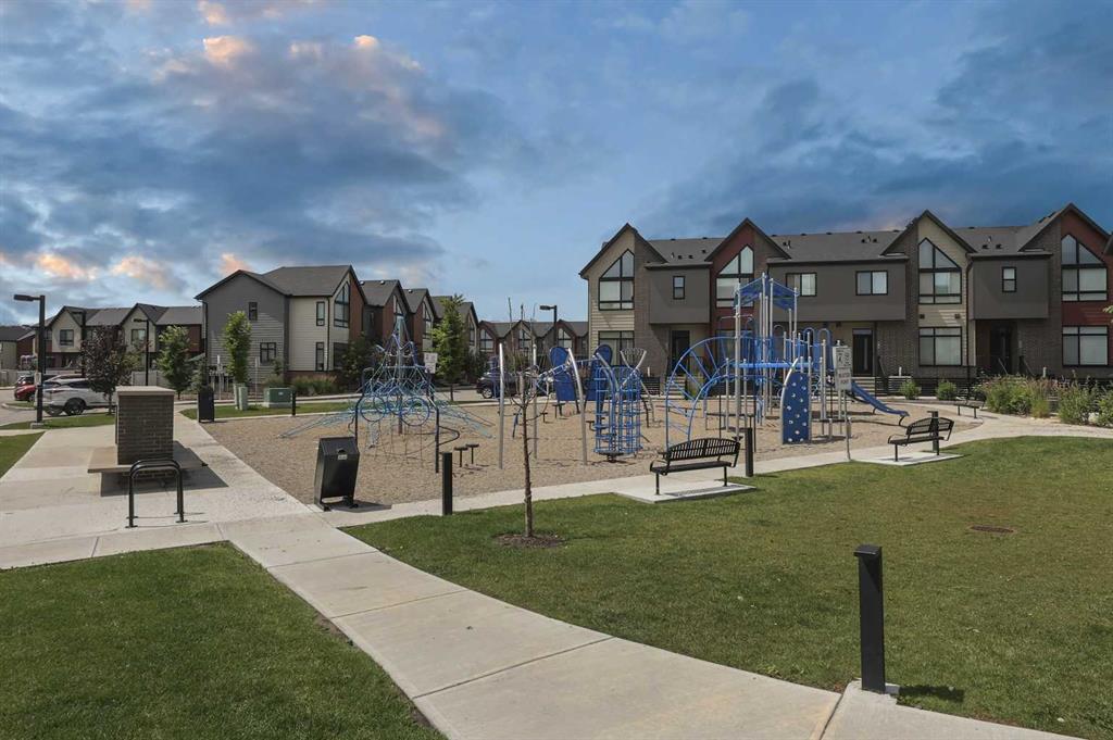 Welcome to this former showhome in the highly desirable community of Sage Hill, offering a perfect blend of modern design, energy efficiency, and functional living in the Arrive at Sage Hill development. With nearly 1,700 square feet of thoughtfully designed space, this 3-bedroom, 3.5-bathroom townhome features a bright, open-concept layout with contemporary finishes throughout. The main floor showcases wide-plank vinyl flooring, quartz countertops, full-height cabinetry, soft-close drawers, and a central kitchen island—perfect for everyday living and entertaining. Step directly from the kitchen into your fenced private yard, ideal for children, pets, or enjoying outdoor relaxation. Upstairs, you'll find a rare dual primary bedroom layout, each with its own walk-in closet and private ensuite. Vaulted ceilings and the convenience of upper-floor laundry complete this well-planned level. The fully developed basement adds versatility with a spacious third bedroom, a full 4-piece bathroom, and a cozy family or recreation room—ideal for guests, a home office, or additional living space. Built with sustainability in mind, this home is equipped with energy-efficient features, including a tankless water heater, high-efficiency furnace, and HRV system for year-round comfort and reduced utility costs. Additional highlights include assigned parking and a prime location close to future schools, shopping, medical services, and easy access to Stoney Trail. Outdoor enthusiasts will appreciate nearby walking paths, natural green spaces, and proximity to Nose Creek Park. This beautifully maintained home offers a turn-key opportunity for first-time buyers, downsizers, or investors. A must-see!