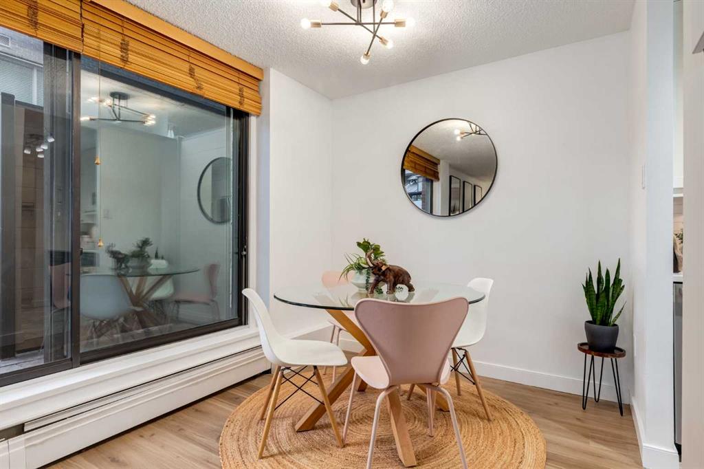 Welcome to The Sandpiper! This bright south facing 2 bedroom END UNIT has been updated throughout and features 2 balconies! From the updated kitchen (2021) with shaker style cabinets and stainless steel appliances to the newly installed engineered hardwood floors this home is not to be missed! The living room has a central floor to ceiling window with access to your large south facing covered balcony and from the dining room you have direct access to your 2nd private patio with over 400sqft and new compost decking, making it the perfect spot for entertaining - especially during stampede!! There are 2 generous sized bedrooms and renovated bath with walk-in shower. Insuite laundry room with storage and an assigned parking stall in the heated underground parkade complete this home. No gym membership needed, the Sandpiper has fitness facilities, sauna/steam room and bike storage. Centrally located and close to transit, restaurants and shops, this a great home for the 1st time buyer or investor.