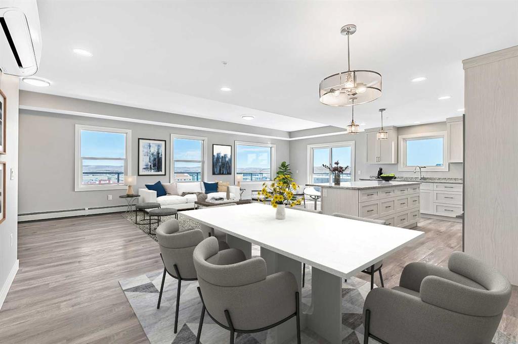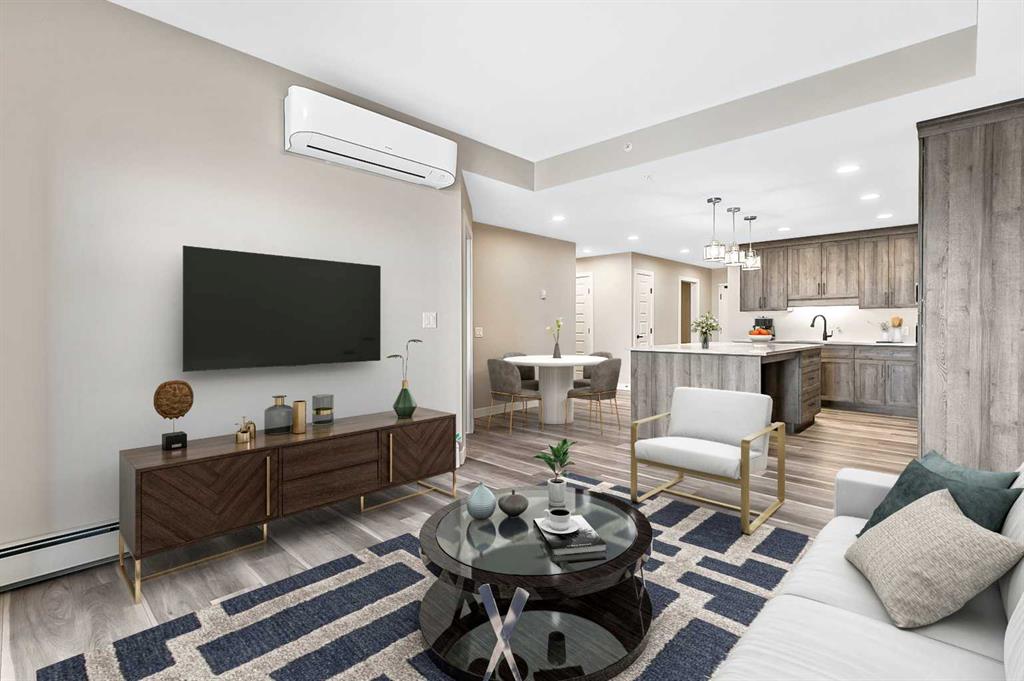 Welcome to modern condo living designed for comfort, quality, and convenience. Construction to begin Spring of 2026! This well-appointed residence offers 9-foot ceilings, 8-inch hollowcore concrete floors, and a dual-wall construction system, providing exceptional durability and superior soundproofing. The open-concept kitchen is finished with quartz countertops, a large island with power and pendant lighting, built-in microwave and dishwasher, and a water line to the refrigerator for an ice maker—perfect for both everyday living and entertaining. Luxury vinyl plank flooring flows through the main living areas, with soft carpeted bedrooms offering a warm and comfortable retreat. Enjoy year-round comfort with split air conditioning units, LED lighting throughout, and the convenience of a gas line for your BBQ on the balcony. Each unit includes a private storage room accessible directly from the balcony, adding rare and practical extra space. The building offers thoughtful amenities including indoor heated parking, optional exterior garage units, a pet wash, designated outdoor pet relief and smoking areas, and a EV charging station. A professional decorating consultation is also included to help personalize your new home. Buyers have a rare opportunity to select finishings and tailor the space to their personal style. The Condo fees are 245.35 per month, and provide excellent value. They include heat, water, sewer, garbage collection, common area maintenance, building insurance, reserve fund contributions, water softening, groundskeeping, and snow removal—allowing for worry-free ownership. Ideal for professionals, downsizers, or investors seeking quality construction and low-maintenance living in a well-managed community. Listing photos are virtual staging and/or artists renderings.