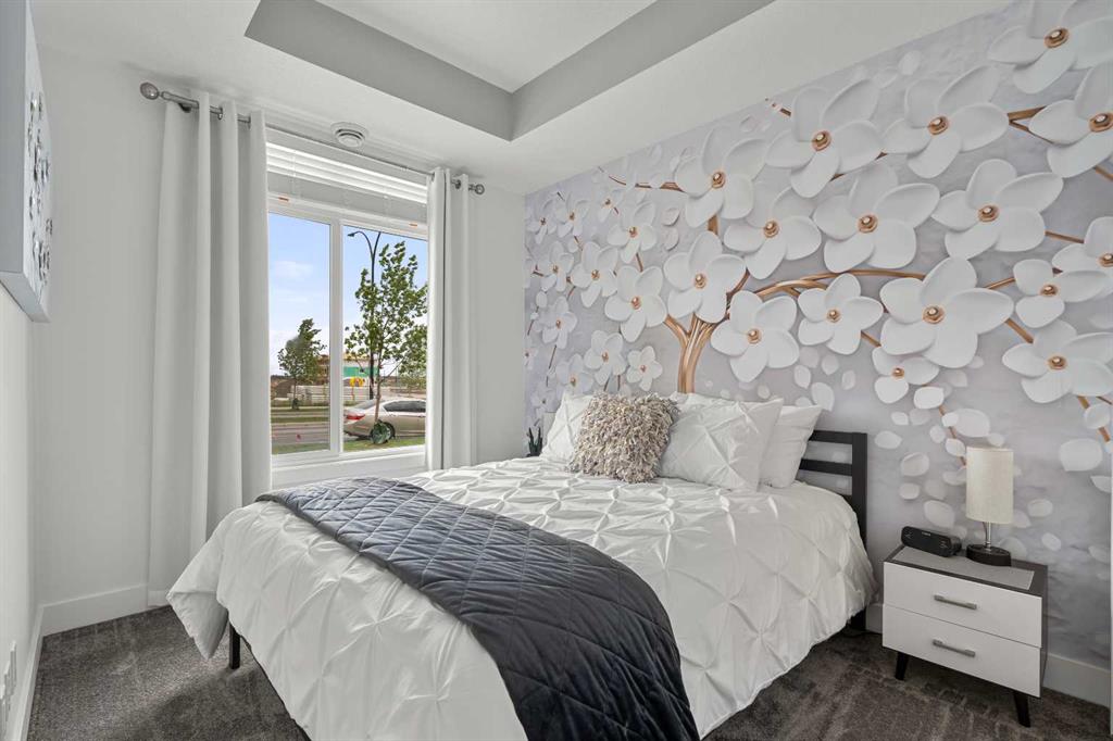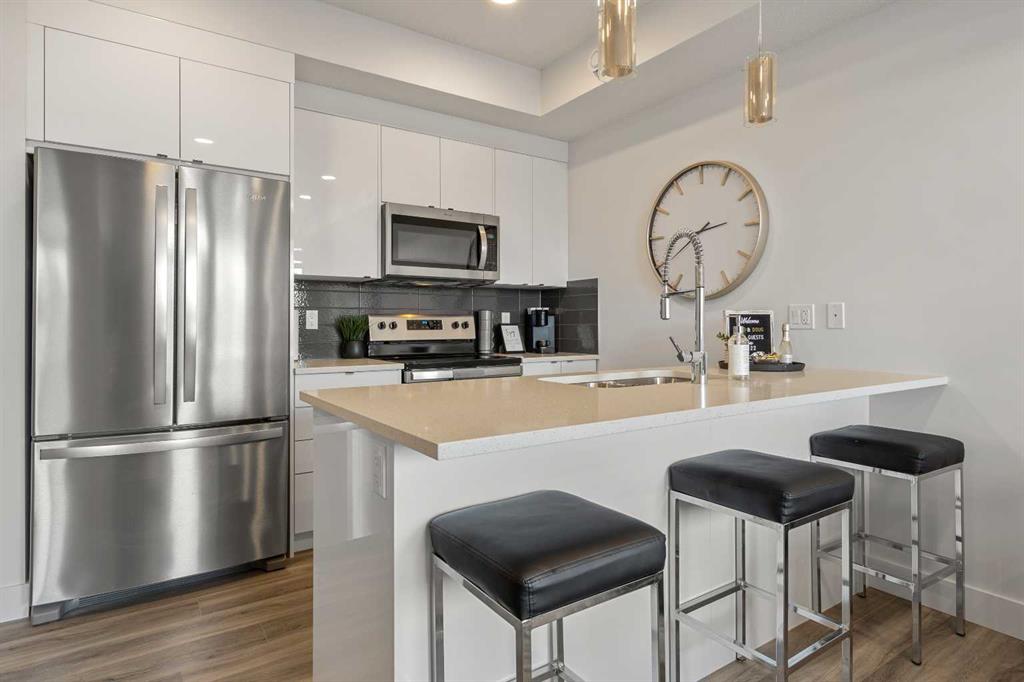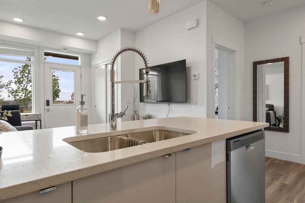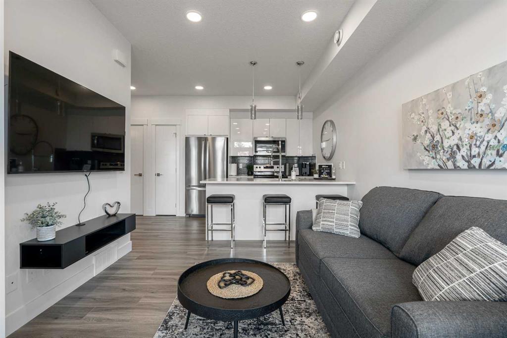 LOW MONTHLY CONDO FEES OF JUST $150.02 and comes with titled parking stall making this an exceptional value in Seton. This modern one-bedroom condo offers strong appeal in a nearly new building with an efficient layout and contemporary finishes that maximize functionality. The kitchen features quartz countertops, stainless steel appliances, and ample cabinetry. A well-sized bedroom, four-piece bathroom with soaker tub and quartz vanity, private patio, and in-suite laundry complete the unit. Additional benefits include titled parking, abundant storage, and affordable condo fees, all within a well-maintained, professionally managed condominium with a strong board. Located in the award-winning Seton community, the property offers walkable access to the YMCA, South Health Campus, retail, dining, transit, and entertainment, which are key drivers of long-term demand. Ideal for investors seeking a low-maintenance asset in a high-growth area or buyers looking for a smart entry point into the market.