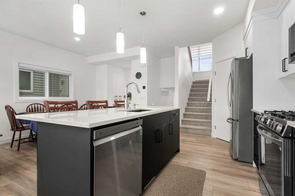 NO NEIGHBORS BEHIND - BACKING ONTO PARKS & RECREATION AREA - STUNNING MOUNTAIN VIEWS - FULLY FINISHED WALKOUT - OVER 2,200 SF - DOUBLE ATTACHED GARAGE - VACANT FOR QUICK POSSESSION... Experience elevated living in this meticulously crafted modern semi detached home, backing onto proposed park & recreation space offering over 2,200 sq ft of beautifully developed living space, stunning mountain views, walk-out finished basement, 3 spacious bedrooms, 3 bathrooms, and striking 9-foot ceilings throughout. With architectural details that balance sophistication and function, this home delivers comfort, style, and unbeatable value. As you step inside, you're welcomed by a bright, open-concept main floor—ideal for both daily life and entertaining. The chef-inspired kitchen is a true centerpiece, featuring elegant quartz countertops, stainless steel appliances, a gas range, and a generous central island perfect for prepping, dining, and gathering. The adjacent living room is anchored by a beautiful electric fireplace and is bathed in natural light thanks to oversized windows that frame unobstructed views of the mountains and open plains. Step out onto the private back deck to spectacular mountain views to the west and open fields to the north, perfect for BBQs or quiet evenings soaking in the scenery. Upstairs, the home continues to impress with a stunning bonus room showcasing soaring ceilings and custom-built-in cabinetry—perfect as a home office, lounge, or creative space. The expansive primary suite offers a tranquil retreat, complete with a sleek 3-piece ensuite and a large walk-in closet. Two additional well-sized bedrooms and a full bathroom offer comfort and flexibility for family or guests. The fully developed walkout basement adds incredible versatility to this home, with large windows, a stylish wet bar with a full size fridge, and custom cabinetry, it's the ideal space for a home theater, guest suite, or secondary living area. The walkout design opens to a private grade-level concrete patio and fully fenced yard. A large furnace/storage room offers additional practicality, with the option of adding a bathroom with rough in plumbing. Location is key, heritage hills offer an abundance of green space walking/bike paths and close proximity to schools, parks and all amenities with easy access to highway 1A leading you to the mountains in less than an hour. You're going to love this home, perfectly blending modern elegance with functional design and breathtaking views, this home is ready to impress. Book your viewing today!