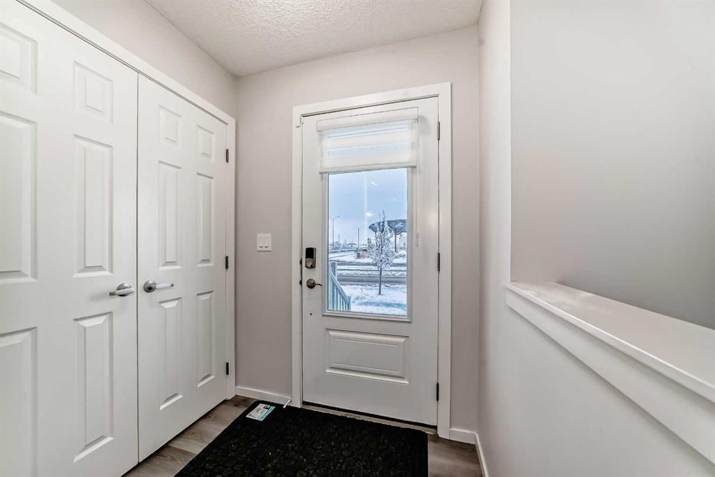 NO CONDO FEES in the over 1439 sq ft, 3 bdrm, 2.5 bath townhouse, with dbl attached garage. If you are looking to own your first home that is affordable and feels like new, look no further. Walking in, you will enjoy the open floor plan, vinyl plank flooring, a beautiful white kitchen with quartz counters, SS appliances, and a kitchen island with seating for 3. There's a 2-piece bathroom on the main as well as a mud room area before entering the double attached garage. Upstairs features 3 bedrooms. The primary bdrm will fit your king-size bed and has a 4-piece ensuite bath with quartz counters and a soaker tub. The walk-in closet is huge, bigger than many large homes. The other 2 bdrms are a good size, as well as a laundry room and another 4-piece bathroom with quartz and a soaker tub. The downstairs is plumbed for the bathroom, it's ready to go. There's a fresh air system added. The best part is it's conveniently located to No Frills, gas, restaurants, Purple Potomus preschool learning, schools and much more. The bus route is close by, with easy access to Stoney Trail, and the shopping center in Coventry Hills is 5 minutes away, with Superstore, Canadian Tire, Dollarama, Shoppers Drug Mart, Winners, Michaels, Staples, Home Depot, Vivo Recreation Center, IMAX movie theatre, many restaurants, and excellent stores. It's a win-win-win in any way that you look at it. priced sharply, and quick possession available.