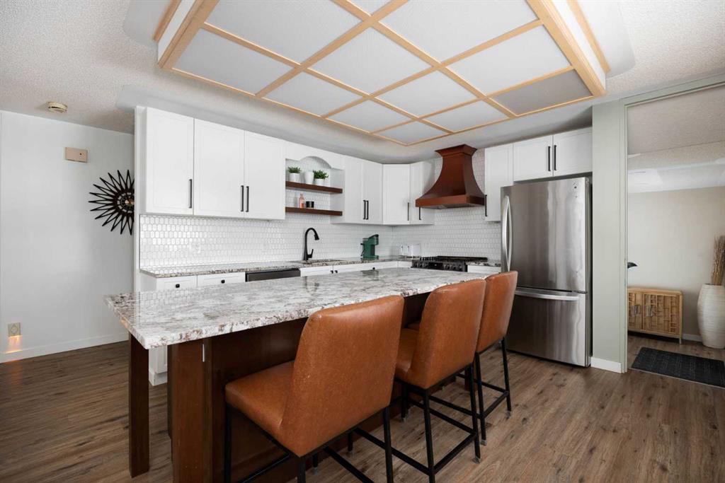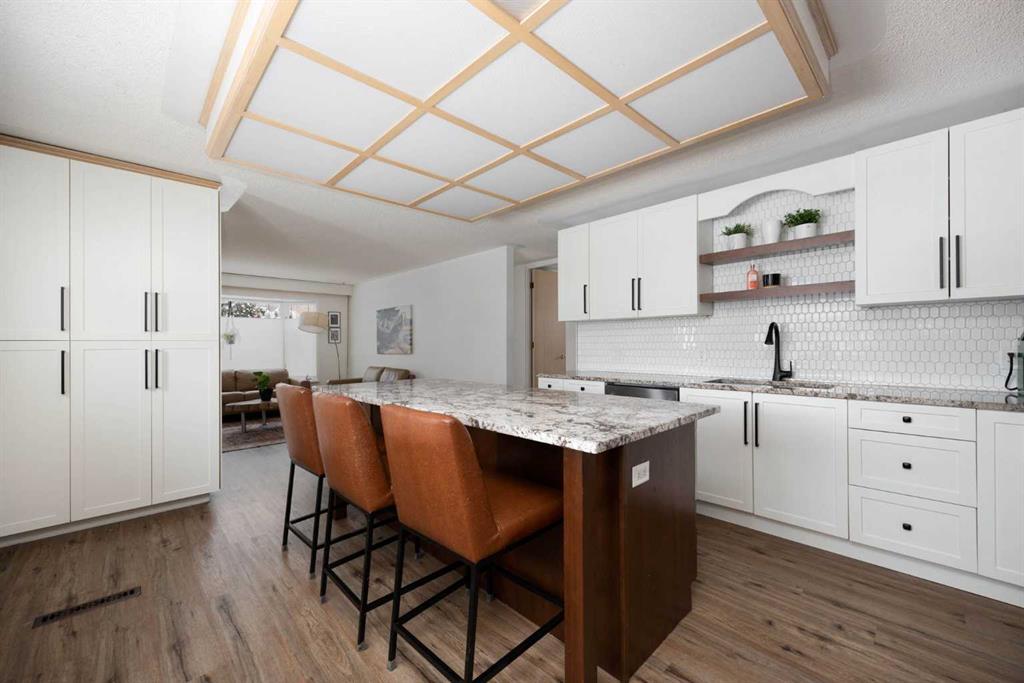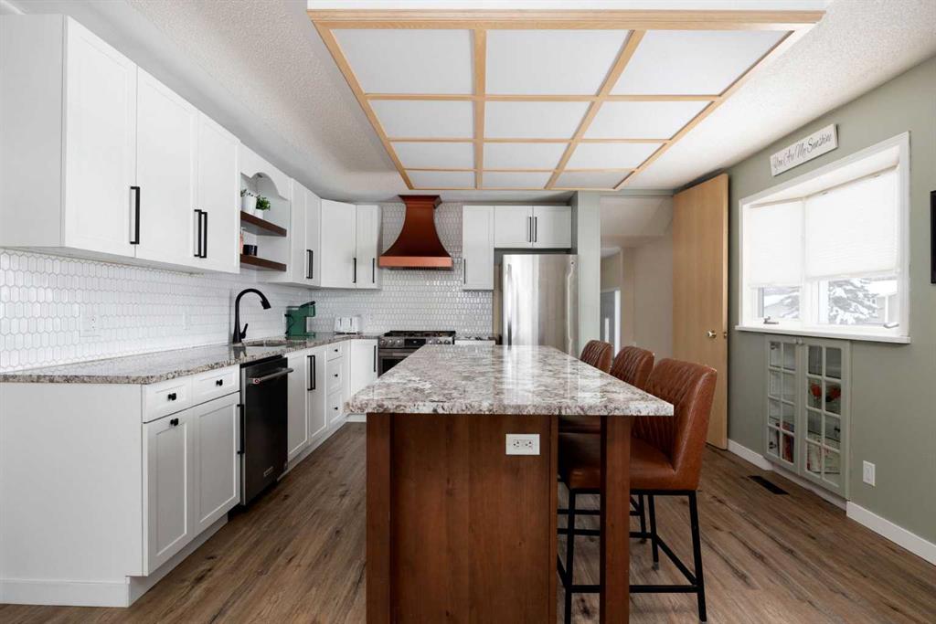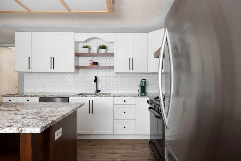 The garage might be the star of this show, but the bougie kitchen is arm wrestling for the title. Welcome to 18 Fitzgerald Drive, a 1175 square foot bungalow sitting pretty on a massive 7701 square foot lot in downtown Fort McMurray. This 1978 home has been loved and updated. And it is ready for its next chapter with you. Let us talk about that garage. It measures 29' x 27'. It has in floor heat. A garage heater. A drain. And wait for it... a 2 piece bathroom with a urinal. This is main character energy at its finest. Your cars, your toys, your weekend projects will all be very happy here. The garage faces quiet May Crescent, giving you peace and privacy even though you live downtown. Plus there is RV parking and room for 3 more vehicles in the driveway. Parking will never be a problem. Now step inside. The entrance is huge. Picture this: you have an armful of groceries and a car seat hanging off your arm. This entrance can handle all of it. No awkward shuffling. No bumping into walls. Just space to breathe and drop your stuff. The open concept main floor is where the magic happens. The kitchen features upgraded white cabinets with a darker island for beautiful contrast. Granite countertops shine throughout. Stainless steel appliances sparkle. The gas stove is a chef's dream. Under cabinet lighting sets the mood. There is a microwave built right into the island. Storage? You have tons of it. The eat up island means you can skip the dining table if you want. Or add one. You have room for both options here. The living room flows right off the kitchen. A Napoleon fireplace keeps things cozy on cold nights. The TV and mount are included so you can move in and relax right away. The primary bedroom is huge. Mirrored dual closets make getting ready a breeze. Solid tall doors on the main floor add a nice touch of class to all the rooms. The main bathroom has dual sinks, a jetted tub, granite countertops and lots of storage. Every single bathroom in this home has granite. Fancy? Yes. Worth it? Also yes. Head downstairs to the large rec room. There is room for a future bedroom if you need it down the road. The basement bathroom is a spacious 3 piece. Out back you will find a fully fenced yard with a beautiful patio and a shed. Mature trees line the property and give you tons of privacy. The yard backs onto a utility right of way so no rear neighbours peeking in. Best part? It is easy to take care of. More time for relaxing. Less time mowing. This home has no carpet anywhere. Vinyl plank flooring & tile runs throughout. The kitchen, bathrooms & HWT have all been updated. It sits above the flood plane. It is close to shopping, schools and buses. Downtown living does not get better than this. Do not judge a book by its cover. This home may surprise you from the street. But inside? It is gorgeous and beautifully bougie. First time buyers, this one was made for you. Check out the detailed floor plans where you can see every sink & shower in the home, 360 tour & video