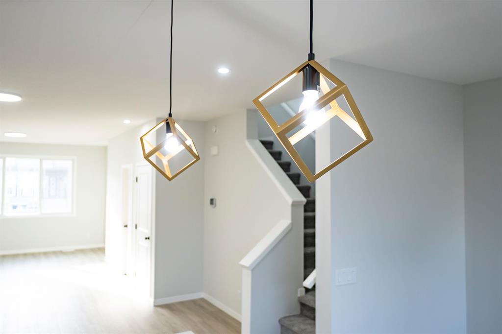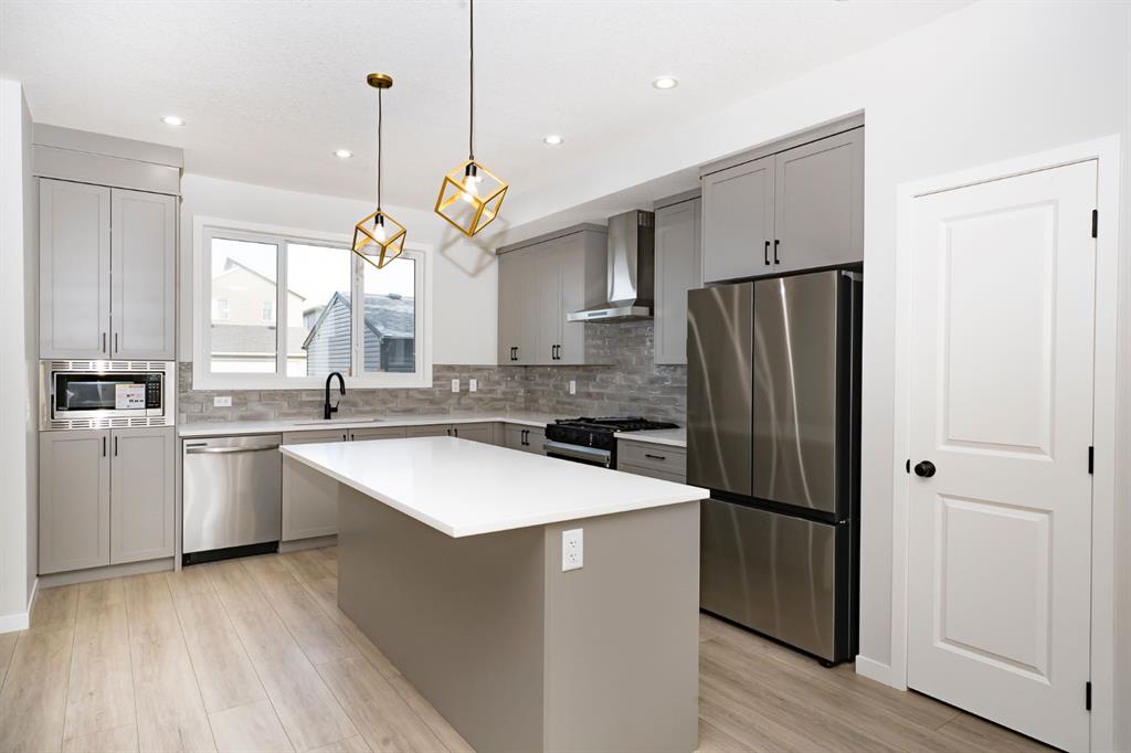 Welcome to this beautifully finished 1,738 sq ft home in the vibrant community of Livingston. Designed with modern living in mind, this three-bedroom, two-and-a-half-bath property combines style, comfort, and function. The main floor features 9-foot ceilings, luxury vinyl plank flooring, and a bright open-concept layout, perfect for everyday living and entertaining. The chef-inspired kitchen is complete with quartz countertops, extended upper cabinetry, stainless steel appliances, a built-in microwave, a chimney hood fan, and a knock-down ceiling finish. Upstairs, you will find three generously sized bedrooms, including a primary suite, a spa-like ensuite with dual sinks and a walk-in shower, and a spacious walk-in closet. A full bathroom and a convenient laundry room with extra shelving complete the upper level. Plenty of natural light and thoughtful upgrades throughout add to the home’s appeal. A separate side entrance provides direct access to the unfinished basement. With its modern finishes, functional layout, and sought-after location, this home is an ideal choice for families.