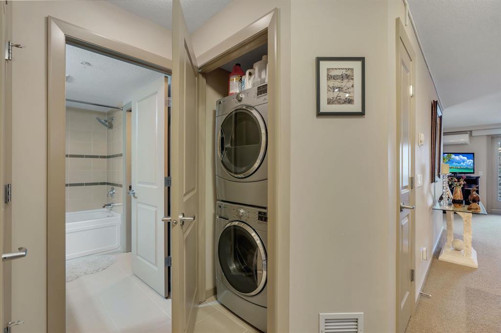 FANTASTIC 2nd Floor One Bedroom + Den Home in the highly sought after Monarch 18+ complex featuring new air conditioning! This beautifully maintained condo offers a stylish kitchen with striking dark cabinetry, newer rare real quartzite stone countertops, tile flooring, breakfast bar, and stainless steel appliances including an OTR microwave/hood fan, water and ice dispenser in fridge and smoothtop stove. The spacious primary bedroom features a walk through closet leading to a practical 4 piece bathroom. A bright and versatile den off the living room provides the perfect space for a home office, study, or guest area ideal for a Murphy bed/desk combo when flexibility is needed for friends or family. Additional highlights include in-suite laundry with washer and dryer, in-floor heating, air conditioning, and a gas BBQ hookup on the balcony. You’ll also appreciate the titled underground parking stall and a large enclosed storage unit. You will really enjoy two beautiful open air courtyards, secure underground parking, daily on site maintenance, and an inviting lobby with multiple seating areas! The location is exceptional steps to walking paths along the pond and transit, and just moments from McKenzie Towne High Street, offering shops, grocery stores, medical offices, and charming cafés. With easy access to major roadways, direct transit to downtown, proximity to South Health Campus, Seton, and the extensive amenities of 130th Avenue, the convenience of this location is unmatched. This pet friendly building (with board approval) is well managed with a healthy financials giving you peace of mind and long term value. Whether commuting downtown, enjoying nearby parks and pathways, or planning weekend escapes, this home delivers the perfect blend of comfort, convenience, and low maintenance living. A must to see. Schedule your private viewing!! Call today.