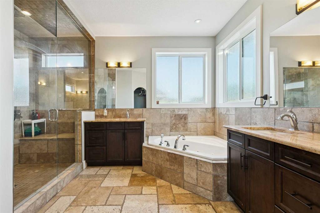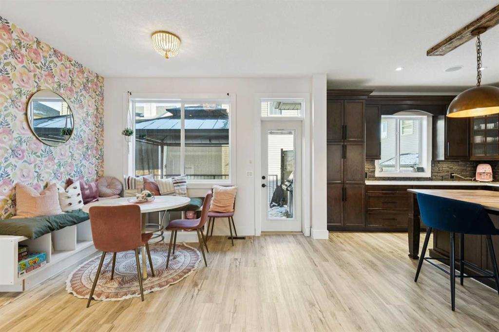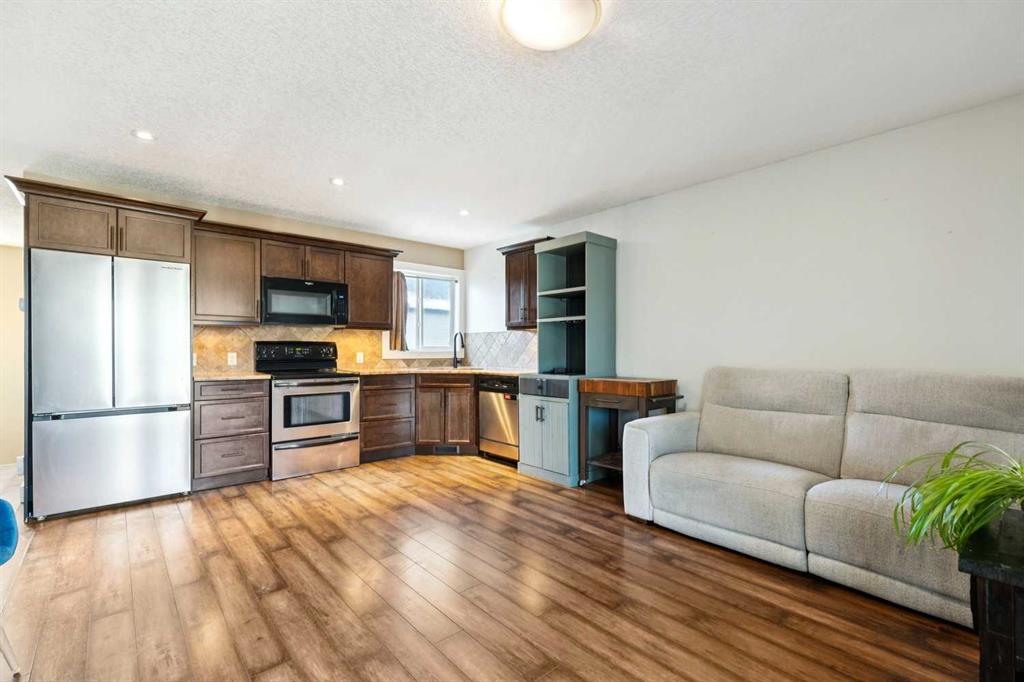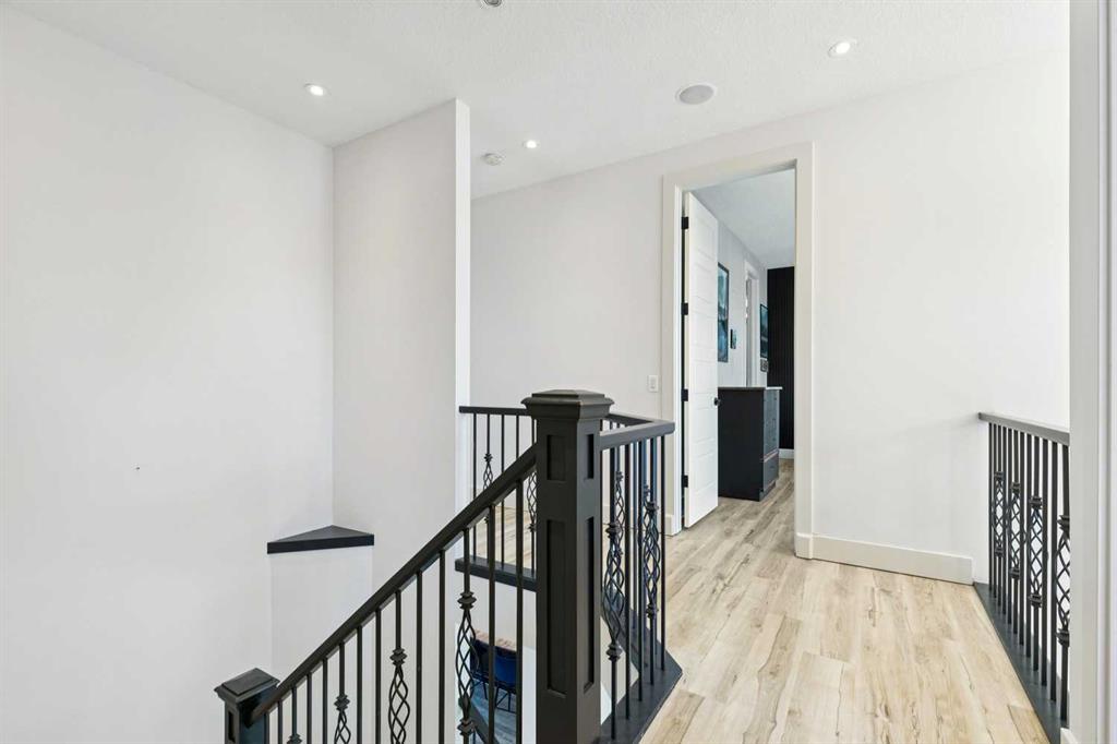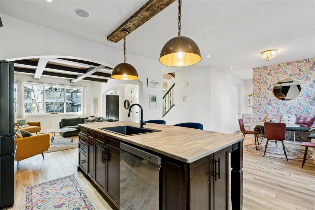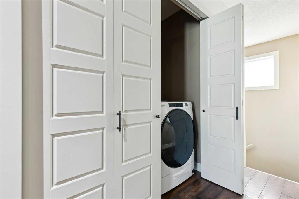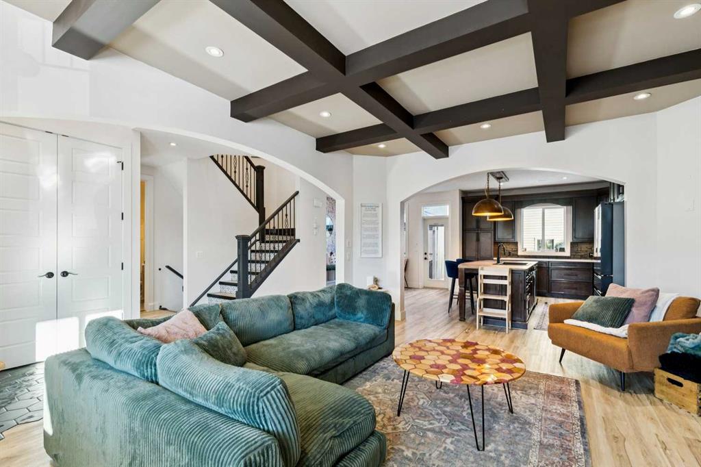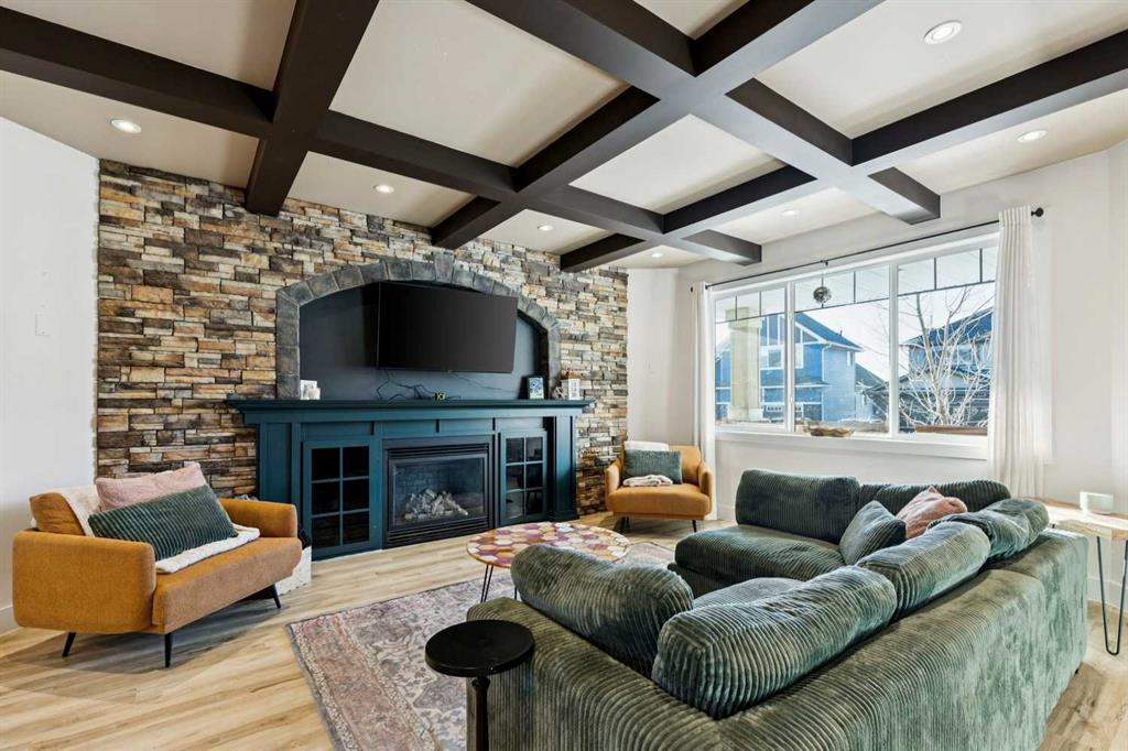 ***$24K PRICE IMPROVEMENT*** Welcome to this exceptional two-storey detached home in the highly sought-after Canals of Airdrie, offering over 2,100 sq ft of living space plus a fully self-contained carriage house(one bedroom/one bathroom/717 sq ft) above a triple car garage—perfect for multi-generational living, guests, or added flexibility. The main home features 4 bedrooms and 3 bathrooms, including a spacious main-level bedroom ideal for a home office or guest room. The entire main level is carpet-free, finished with luxury vinyl plank flooring throughout most of the home for a clean, modern feel. At the heart of the home is a gorgeous chef’s kitchen, complete with a large butcher block island, built-in oven, decorative hood fan, and stainless steel appliances—a dream setup for cooking and entertaining. The living room impresses with its beam ceiling and striking floor-to-ceiling rock fireplace wall, creating a warm and inviting space. Upstairs, retreat to the large primary bedroom (14’ x 16’) featuring a luxurious 5-piece ensuite with double sinks, a walk-in shower with bench, jacuzzi tub, and a spacious walk-in closet. The secondary bedrooms are all generously sized, making this home ideal for families. The carriage house offers its own full kitchen, living room, bedroom, and bathroom, providing incredible versatility—think grandparents, adult children, or long-term guests. Recent updates include new LVP flooring, new fridge, dishwasher, washer & dryer, new toilet in the ensuite, and a new hot water tank in the main house. Located directly across the street from the Canals, you’ll love the scenic pathways and water views, with Ralph McCall School (K–4) and C.W. Perry Middle School (5–8) nearby. Enjoy the convenience of being just a short drive to Tim Hortons, Sobeys, and other everyday amenities.