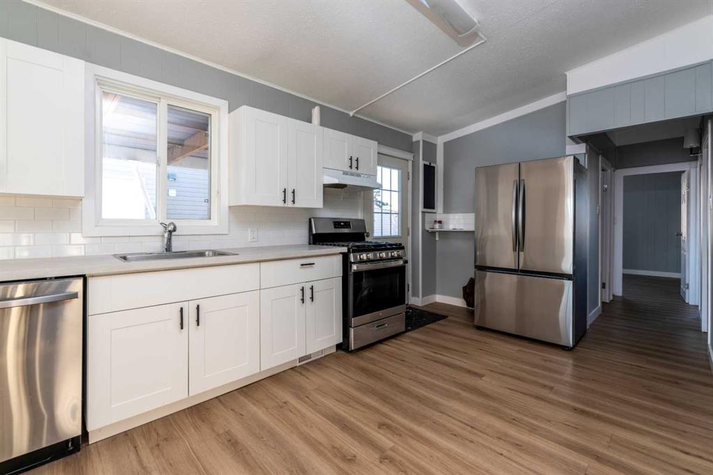 Make your move to cost effective living at Lloydminster Village. This is a bright, clean and updated move in ready unit! Lovely, bright white kitchen with a stainless appliance package and opened up island to the south facing living room. Vinyl plank throughout, glass closet doors, updated lighting package with decor switches and 100 amp electrical panel. With three bedrooms and the open concept living area there is a fair amount of room for any furnishing arrangements and convenient storage options with a dedicated laundry room. A convenient location in the park, with close proximity to the clubhouse. Cove Communities are well run and offer access to the Clubhouse; the park fees cover water, sewer, garbage collection and snow removal. All offers must be subject to occupant approval by Lloydminster Village and signing a Cove Communities specific Purchase Contract prior to closing. Welcome Home!
