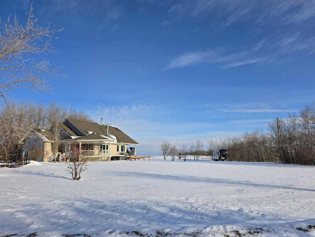 This exquisite 1.5-storey, custom-built home offers 2,462 sq ft of beautifully designed living space, nestled on a breathtaking 8.28-acre parcel of land. Surrounded by sweeping panoramic views and expansive pasture land, this tranquil and secluded oasis is fully fenced and cross-fenced, perfect for hobby farming or simply enjoying nature in peace and privacy. Step onto the inviting front veranda and picture yourself relaxing on warm summer evenings, soaking in the stunning scenery. Outside, you'll find a thoughtfully landscaped yard featuring numerous fruit trees, vibrant perennial flowers, and a charming garden shed—perfect for storing tools and tending to your garden all season long. Just steps from the new deck, relax and soak your cares away in 4-person hot tub, the ultimate spot to unwind while taking in the peaceful beauty that surrounds you. Inside, the grand foyer welcomes you with soaring vaulted ceilings and an abundance of natural light pouring through large windows, offering clear views of the home's elegant interior. A charming front den with a cozy gas fireplace provides a versatile space for a formal dining room or a sophisticated home office. The heart of the home is the open-concept kitchen, fully equipped with center island, breakfast counter, pantry, and ample cabinetry to meet all your storage needs. Adjacent is a cozy living room featuring a newer wood stove and large windows that frame the surrounding landscape—ideal for wildlife watching or curling up for a movie night. The spacious dining room accommodates a large table and coffee bar, and boasts a beautiful bay window overlooking the brand-new 24' x 14' deck—just one of two decks perfect for outdoor entertaining, with one being fully covered so you can enjoy unforgettable nights under the Northern lights. The main floor also features two generously sized bedrooms, along with a luxurious master suite complete with vaulted ceilings, a walk-in closet, double-sided gas fireplace, and a spa-like ensuite with jetted soaker tub, stand-up shower, and private toilet room. A well-appointed main floor laundry room includes newer washer and dryer units and built-in shelving for added convenience. Upstairs, a balcony offers a stunning overlook of the main living area. Discover a spacious bonus area over the garage, with partial walls and two built-in beds—ideal as a playroom, studio, or guest retreat. The lower level features a spare room with a pedestal sink perfect for a home business space, a large unfinished rec room ready for your personal touch, and a private 2-bedroom illegal in-law suite with its own separate entrance. This extra space is perfect for accommodating your growing or extended family, offering everyone their own private area to relax and unwind. From cozy evenings by the fire, and tranquil soaks in the hot tub, don’t miss your opportunity to own a piece of paradise! Call today to schedule your showing!