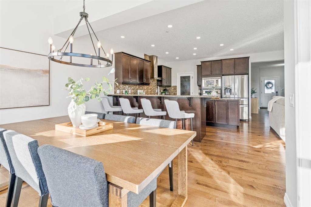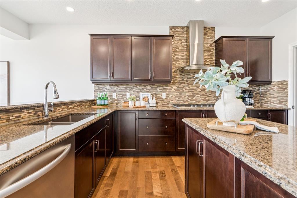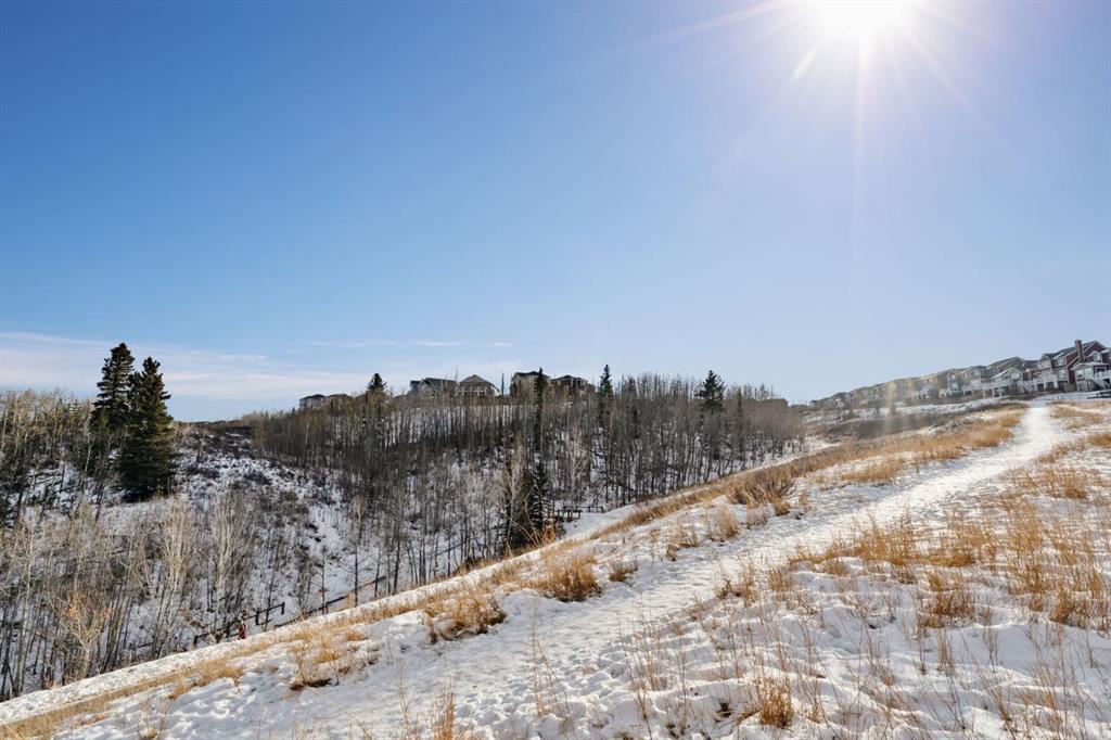 Located near the very end of one of Cochrane’s most desirable streets, this exceptional 2012 built walkout home offers 2,571 sq. ft. above grade plus a fully finished walkout basement, backing directly onto a treed Environmental Reserve with NO NEIGHBOURS BEHIND. With direct access to the pathway system and miles of scenic walking paths leading toward the Bow River, this setting delivers privacy, nature, and lifestyle rarely found together. The home offers a welcoming sense of arrival with a covered front porch and an oversized garage featuring high ceilings, built-in cabinetry, and shelving. Inside, the open-concept main floor showcases 9’ ceilings, designer maple flooring, and a spacious living room anchored by a gas fireplace with mantle. The U-shaped kitchen is both elegant and functional, featuring granite countertops, a large island, Stainless Steel appliances, a gas cooktop, and a BBQ gas line, perfect for entertaining. A dedicated mudroom adds everyday convenience. Upstairs, a large bonus room with an electric fireplace separates the children’s wing from the primary retreat. The primary bedroom enjoys peaceful, treed views and features a luxurious ensuite with his & hers granite vanities, soaker tub, separate shower. The main bath offers double under-mount sinks, granite countertops. Secondary bedrooms are generous in size, one with corner windows and a walk-in closet. A tiled laundry room with cabinetry and a double-sided linen closet completes the upper level. The fully finished walkout basement features 9’ ceilings, a comfortable recreation/lounge area, a 4th bedroom, and a full bathroom, providing excellent flexibility for guests or growing families. Additional highlights include a dual-zone furnace, two air-conditioning units, central vacuum rough-in. Outdoor living is equally impressive with a large deck, incredible views, a walkout-level patio with brick walkway, landscaped yard, outdoor shed, and a high-end 2020 Hot Spring hot tub, perfectly positioned to enjoy the surrounding natural beauty year-round. This is a rare opportunity to own a walkout home with privacy, views, and direct access to nature in one of Cochrane’s most coveted locations.