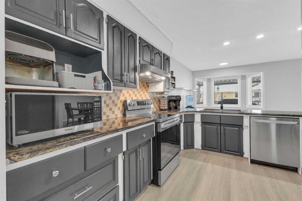This home has had Everything taken care of in recent years – and that means you get to Move In and Enjoy!! THE NEW……New flooring, Trim, Doors, Closets, New Master shower, Granite in the kitchen, and Paint upstairs and down. THE BIG STUFF…..2025 - Furnace, Hot Water tank & A/C installation. RECENT YEARS: TRIPLE PANE Windows and Patio door, Roof, Siding, Garage door, Rubber stair, Path and Back deck, and a beautiful Chain link fence. This home is made for your growing family….with a total of 5 Bedrooms, 3 Bathrooms, Massive kitchen, eating area and formal dining space. The upstairs living room is bright and cozy, the front entrance is large enough for all the kids to pile in; and a MAIN FLOOR Laundry room!! This beautiful Bungalow is rounded out with 3 bedrooms upstairs including a Primary with walk-in closet and ensuite and a main bathroom for guests and others to share. There are two separate access points to the basement (Bring on the most epic game of tag or hide-and-seek ever), and the space down here is Absolutely Fantastic!!! There is a fully functioning rustic wood wet bar, two more bedrooms and another full bathroom. OUTSIDE – you have a beautiful covered deck with new rubber coating, chain link fence and a newly leveled yard with new sod a few years ago. This home is low maintenance so you can enjoy the time with your family and friends. There is back lane access and a large shed for you to enjoy and TONS of street parking with an extra-large paved driveway. Bring the Family & Enjoy the Space.