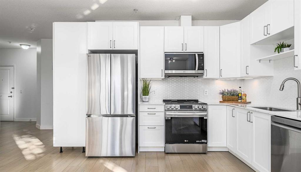 This bright and well-maintained two-bedroom, two-bathroom corner unit is located on the main floor but sits slightly elevated, offering the convenience of easy access while still feeling private and secure. The west-facing balcony adds another layer of separation from ground level and is a great spot to enjoy afternoon sun and evening light. As a corner unit, the home benefits from having only one neighbouring unit on one side, along with beautiful mature trees out front that create a quiet, comfortable setting. Large south- and west-facing windows bring in an abundance of natural light throughout the day, making the space feel open and welcoming and ideal for anyone who enjoys bright living spaces or keeping plants. The layout is spacious and flexible, with high ceilings and an open-concept design that allows for a variety of living, dining, and work-from-home configurations. The kitchen has been fully updated since 2024 and features new cabinetry, quartz countertops, stainless steel appliances, and modern finishes that flow naturally into the main living area. Luxury vinyl plank flooring runs throughout the home, complemented by updated baseboards, trim, door hardware, window coverings, refreshed bathroom vanities and the convenience of in-suite laundry. Comfort is enhanced with in-floor heating, providing consistent warmth during the winter months, along with a fireplace that adds to the cozy feel of the living space. This unit includes two well-sized bedrooms and two full bathrooms, making it a great option for downsizers, an older couple seeking main-floor living, or investors. Its proximity to St. Mary’s University and everyday amenities supports strong rental appeal. Located in the established lake community of Midnapore, residents enjoy access to lake amenities, including swimming, skating, tennis, and year-round use of the clubhouse. Fish Creek Park is nearby, offering easy access to walking and cycling paths, while shopping, transit, and major roadways are all close at hand. The complex is well managed and offers 24-hour security. A bright, comfortable home in a quiet setting with strong lifestyle and investment appeal.