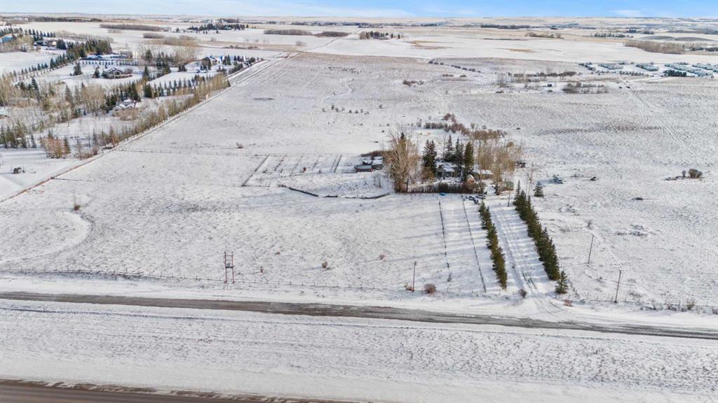 This is a rare, high-exposure 11.19-acre development site at the absolute north gateway of Okotoks, (Directly North of Wedderburn) positioned just east of Highway 2A along the paved sub-road at the first set of lights entering town. Elevated topography delivers commanding, unobstructed mountain views—an increasingly scarce and premium feature—while mature spruce trees create a private, park-like setting. Offered strictly as land value with the residence included at no cost, this parcel is surrounded by established and expanding infrastructure including schools, commercial uses, golf courses, and residential neighbourhoods, all within walking distance, and supported by a new signalized intersection for safe, efficient access. With visibility, access, views, and growth already in place, this irreplaceable gateway parcel offers immediate and long-term upside for commercial or mixed-use development.
