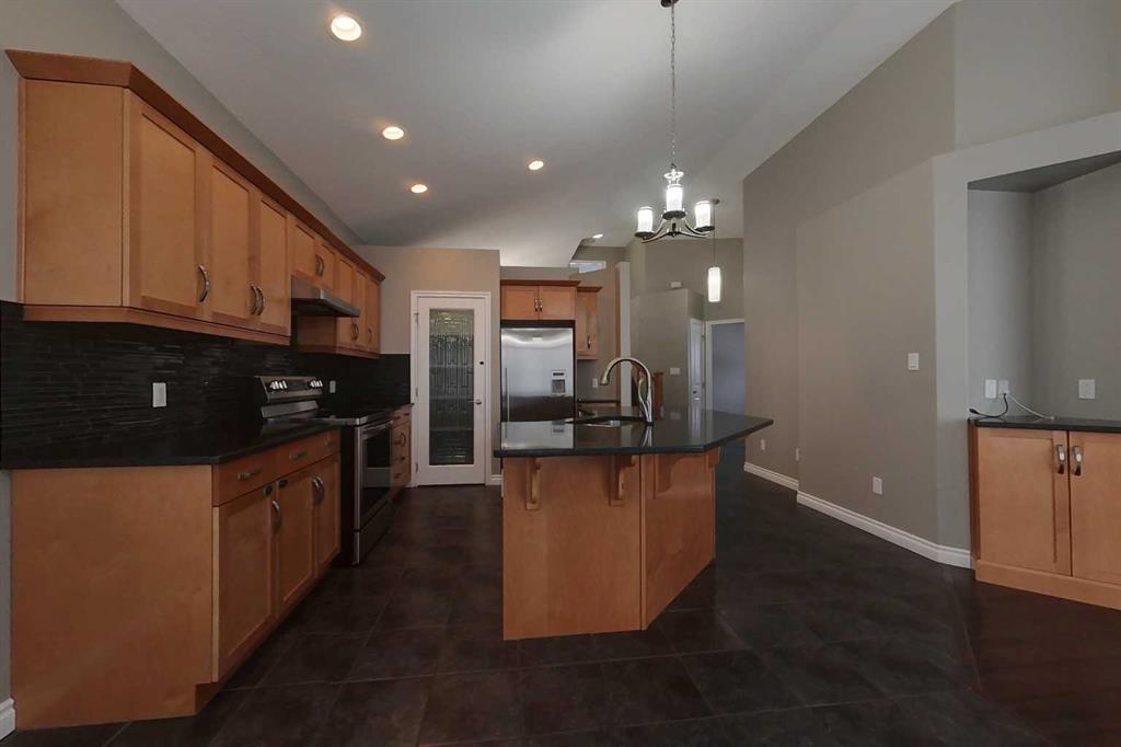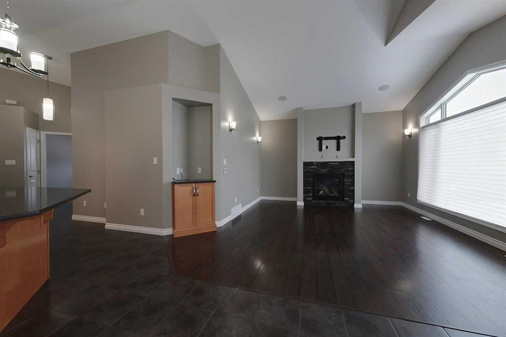 This spacious home features 4 bedrooms and 3 bathrooms, designed with an open concept layout that enhances the flow of natural light throughout. The living room boasts tall ceilings and a cozy gas fireplace, making it an inviting space for gatherings. The kitchen includes a central island, perfect for meal prep or casual dining. The large master suite offers a private retreat, while the double attached garage provides convenience and additional storage. Outside, the fenced yard offers a safe area for outdoor activities. Located close to schools and downtown amenities, this property is ideal for families seeking both comfort and accessibility. A large recreational room adds versatility to the living space, accommodating various needs.