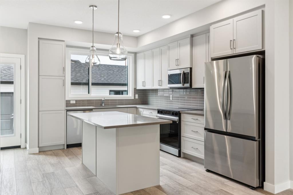 Modern Duplex with secondary legal Suite | Move-In Ready | Prime South Calgary Location. This new beautifully crafted paired home offers contemporary style, income potential, and tasteful upgrades throughout. Located in one of South Calgary’s most desirable neighbourhoods of Acadia, this home is perfect for first time home buyer, investors, multi-generational families, or homeowners looking to offset their mortgage with rental income. From the moment you arrive you will appreciate the attention to detail. The main residence of this MIDTOWN 1 model is 1452 SqFt | 3Bed | 2.5 Bath and features 9-foot ceilings, light neutral finishes, large windows and an open-concept layout that flows seamlessly from the living room to the central kitchen. The chef-inspired kitchen boasts quartz countertops, stainless steel appliances including a built-in microwave, and a large island—ideal for entertaining or everyday meals. Upstairs, the primary bedroom offers a walk-in closet and a private 4-piece ensuite, while two additional bedrooms, a full bathroom, and upper-level laundry (with washer and dryer) complete the upper floor. The secondary legal suite is 578 SqFt and has a private side entrance with a concrete walkway, making it ideal for tenants or extended family. It features high ceilings, large windows, spacious kitchen and eating area, in-suite laundry, and its own cozy living space—bright, functional, and designed for comfort. Enjoy Calgary’s summers with a private, fenced yard featuring a spacious patio perfect for enjoying a morning coffee, entertaining with friends and family or just a place to relax. Designed to be low maintenance and turnkey. A detached double-car garage completes the package, offering convenience and additional storage. Don’t miss your chance to own a home that’s as practical as it is beautiful—with income potential, modern finishes, and move-in ready condition, this property truly has it all. This complex is home to only 19 units and is surrounded by green space, parks & playgrounds. Walking distance to schools, shopping and transportation this location is hard to beat. Call to book your private tour or come visit us during our Showhome hours.