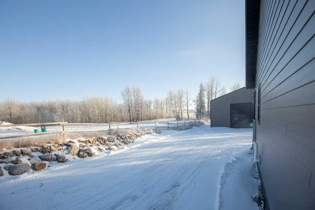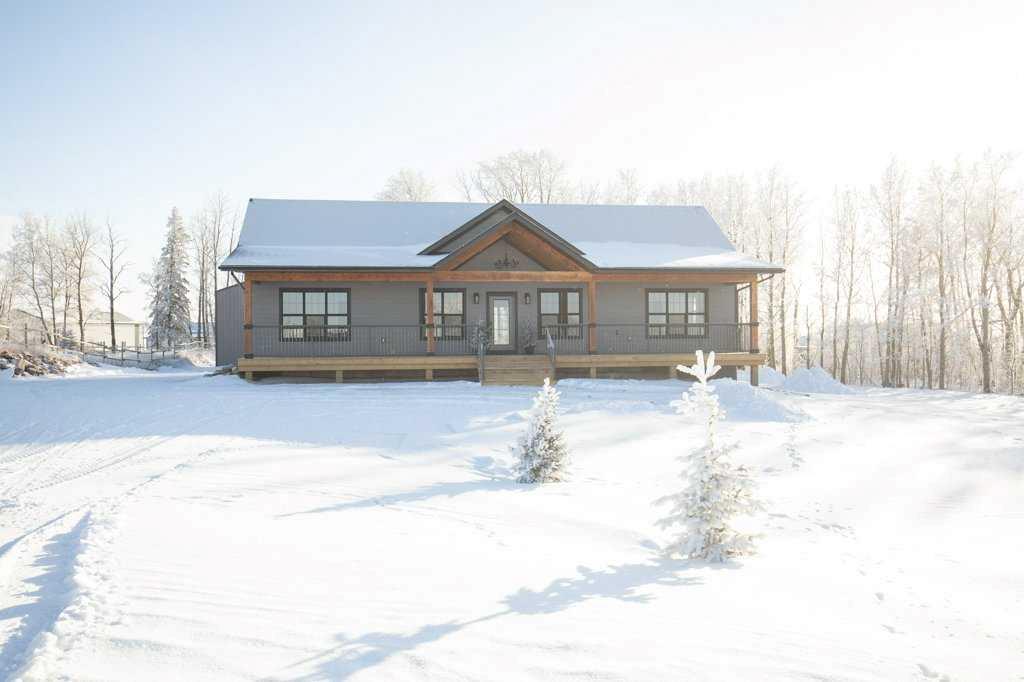 This impressive RANCH STYLE HOME is expansive and exquisite. Perched on 1.65 acres in a peaceful setting surrounded with serene views. Bold beams and a spacious veranda span the length of exterior. Handsome Hardy Board siding gives that top notch touch to the curb appeal. The 36x50 SHOP offers indoor space with endless possibilities!! Step inside and breath in the airy vaulted ceilings and modern design. The kitchen features two tone custom cabinetry, quartz countertops, and stainless steel appliances. The pantry is a dream with ample storage space. Step thru the glass sliding doors for easy access to the endless backyard. The primary bedroom is spacious and boasts a spa-like 5-piece ensuite. Including a gorgeous glass shower, double sinks, and massive walk-in closet. A generous bedroom and 4-piece bathroom offer additional accommodations. Laundry is also conveniently located on this level. The rear entry door brings you to the beautiful mudroom. Use your imagination, because the basement awaits your finishing touches. If you are looking to escape the hustle and bustle of city life, this could be the one you've been searching for. This property offers the cherished perks of an acreage lifestyle. Peace, privacy and space to stretch out. Schedule your showing today!
