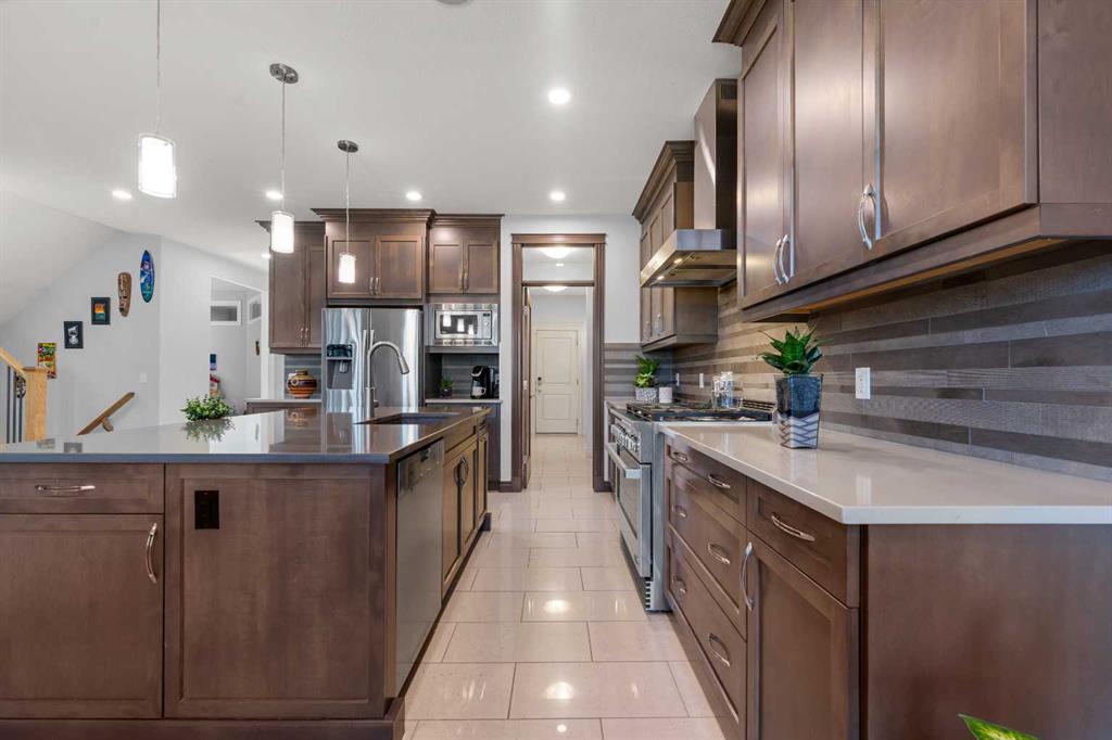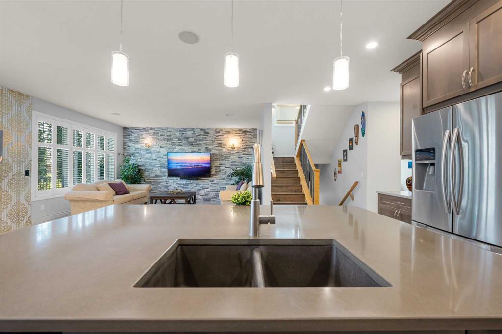 ** Stunning Home with a Walkout Basement Backing onto the Canal with a private dock** Manicured Landscaping Front & Back Yard | Canal Views | 2,696 SqFt | 4 Bedrooms | 3.5 Bathrooms | Modern Finishes | Accent Walls | Electric Fireplace | Chef's Kitchen | Full Height Cabinets | Stainless Steel Appliances | Gas Stove | Chimney Hood Fan | Oversized Kitchen Island with Extended Barstool Seating | Walkthrough Pantry | Main Level Office/Den | Vaulted Ceilings | Multiple Ceiling Fans | Central Air Conditioning | Grandiose Bedrooms | Spa Ensuite Bath | Steam Shower | Upper Level Bonus Room | Upper Level Laundry | Finished WALKOUT Basement | Entertainer's Palace | LED Pot Lighting Throughout | Rec Room/Media Centre | Dry Bar | Expansive Composite Deck | Concrete Patio to Walkout Basement | Artificial Turf | Stone Retaining Walls | Firepit | OVERSIZED Double Attached Garage. Welcome home! This stunning 2-storey family home is full of incredible modern finishes, high vaulted ceilings, LED pot lighting, large windows & ample living space. The main level has a beautiful open floor plan kitchen, dining & living area encouraging entertaining friends & family. The sparkling chef's kitchen is outfitted with full height cabinets, stainless steel appliances, a gas stove, statement piece chimney hood fan & a beautiful centre island. The island has an extended barstool seating area great for small meals. The kitchen has a walkthrough pantry that leads to the interior garage door for an easy grocery drop. The dining room is paired with a door that leads to your composite deck with views of the canal. The deck has a gas line built in your summer BBQs. The living room has a stone accent wall adding both texture & style to this space. The main level office/den sis a great addition for a work from home lifestyle. The vaulted ceilings compliments the true size of this home. Upstairs holds 3 bedrooms, a bonus room & laundry room. The primary retreat is a personal oasis with a view of the canal, a walk-in closet & private ensuite. The ensuite has double vanities, a walk-in steam shower with a built-in bench and a cheater laundry door. Bedrooms 2 & 3 upstairs are both a generous size & share the 4pc bath with a tub/shower combo. The bonus room is a great space to relax & unwind in the evenings. The upper level laundry room is outfitted with front loading washer & dryer with a folding shelf above, cabinetry for storage & a sink for prep. Downstairs, the walkout basement is made to entertain! The dry bar & rec room are inviting & make an incredible hobby room for your liking. The basement holds the 4th bedroom in this home along with another 4pc bath. Step outside to the picturesque backyard with polished landscaping & incredible living space. The concrete patio is covered from the upper deck providing with a covered dining space. The stone retainer walls add depth to the space. Walk out onto your private deck & enjoy a beverage at the end of your day. Hurry & view this stunning home today!