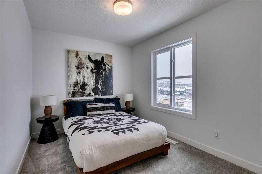 Welcome to this beautiful new Lucas Model 3 bed & 2.5 bath townhome in the highly desirable Elkwood project, nestled within the vibrant Springbank Hill community of SW Calgary. Offering over 1,600 sq. ft. of thoughtfully designed living space, this home blends contemporary style with everyday comfort. The open-concept floor plan features bright living and dining areas highlighted by large windows that fill the home with natural light. The modern kitchen is designed for both entertaining and daily living, complete with stainless steel appliances and elegant quartz countertops. Luxury vinyl plank flooring enhances the main living areas, while plush carpeting adds warmth and comfort to the bedrooms. The spacious primary suite includes a private ensuite and a walk-in closet, creating a relaxing retreat. Enjoy outdoor living on your private patio, perfect for unwinding or hosting guests. Added convenience comes with an attached garage and an additional driveway, providing parking for up to two vehicles. Experience life in the dynamic and sought-after Springbank Hill community. Photos are representative.