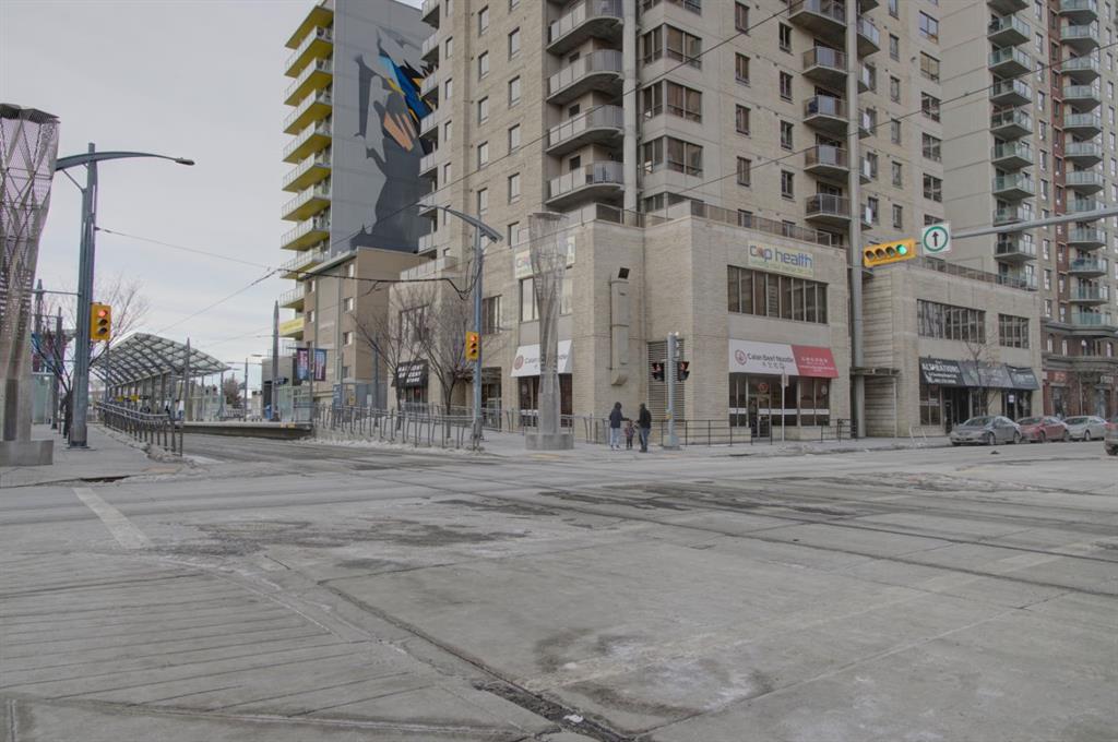 One of the best downtown price per SQF offering in today's market. Fantastic 2-bedroom, 2-bath apartment condominium in the highly desirable Vista West building, located directly on the 10th Street–Kerby LRT Station and just steps from the Bow River pathway system. This outstanding 14th-floor unit offers exceptional value and features a west-facing balcony with city and mountain views, 9-foot ceilings, central air conditioning, in-suite laundry, and titled underground parking. The well-designed layout includes a spacious living room filled with natural light, an open white kitchen, and a sunny primary bedroom complete with a walk-through closet and a private ensuite featuring an oversized shower. Recent updates include quartz countertops in both the kitchen and bathrooms, adding a modern and upscale touch. West Pointe Plaza is a well-managed, amenity-rich building offering high-speed elevators, concierge service, 24-hour security, a secure underground parkade, garbage chutes on every floor, a fully equipped fitness centre, and a residents’ party room with ping-pong and foosball tables. Ideally positioned on the edge of Calgary’s downtown core, with the new Cowboys Event Grounds nearby, this location puts shopping, cafés, restaurants, transit, and river pathways right at your doorstep. Previously operated as a fully furnished rental, the unit can be sold fully equipped with furniture, kitchenware, linens, and more — offering a turnkey opportunity for investors or flexible urban living. Immediate possesion available, book your viewing today!