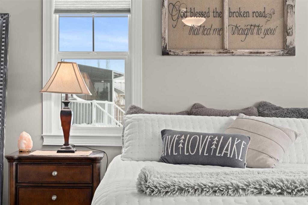 Welcome to an exceptional retreat in Meridian Beach, where thoughtful design meets the ease, energy, and beauty of four-season lake living. Perfectly positioned at the end of a quiet cul-de-sac, this home sits just steps—approximately 80 metres—from one of the community’s sandy beaches and backs directly onto the canal, placing you at the heart of Meridian Beach’s vibrant year-round lifestyle. From summer’s beloved Canal Days with homemade raft races, paddleboard and kayak competitions, and lively markets, to winter celebrations featuring ice fishing derbies, 3-on-3 hockey, curling, and skating, this is a community that truly comes alive in every season. Paddleboard, tennis, and basketball courts, scenic walking paths linked by three charming bridges, and a Community Hall hosting year-round events such as yoga, crafting, game nights, and markets further enrich daily life here. Backing directly onto the canal with an assigned boat slip and boat dock included, this nearly 3,000 sq. ft. home offers effortless access to the water and a lifestyle that’s as active—or as relaxed—as you choose. The main floor is designed for both everyday comfort and memorable gatherings. A vaulted living room with fireplace and built-in bookcases creates an airy, light-filled focal point, while the large, welcoming kitchen and dining area enjoy canal views and direct access to the rear deck—perfect for morning coffee by the water, relaxed family meals, or evening entertaining. A generous front foyer sets an inviting tone on entry, complemented by a practical rear mudroom and laundry area with access from the double attached garage. The main-floor primary suite is a private sanctuary featuring a luxurious ensuite and walk-in closet, while a second main-floor bedroom—ideal as a home office or guest room—is thoughtfully separated by the main living space. A large, privately located powder room completes this level. Upstairs, space abounds with three large bedrooms, including one with a private full ensuite, while the remaining bedrooms are served by a spacious four-piece bath. A huge bonus room—perfect as a sixth bedroom, playroom, media room, or home gym—adds exceptional flexibility, while a cozy book nook in the hallway and ample storage throughout the home and basement speak to the home’s smart, family-friendly design. Outside, the double attached garage and extended driveway provide plenty of room for vehicles and guests. And when it comes to lifestyle, lake living here truly shines year-round—boating, swimming, and beach days in summer, followed by skating, hockey nights, and ice fishing in winter. This is not just a summer escape; it’s a place to put down roots, grow, and create lifelong memories in a home you won’t soon outgrow. Notable recent improvements include Rear Fence(2025) , Driveway( 2025), Shingles (2023) Edging/Trees (2025) Reverse Osmosis and water softener (2024), Humidifier (2023) Shed (2024)