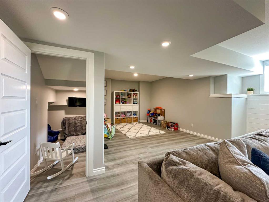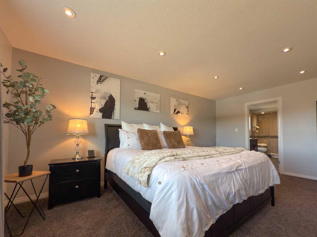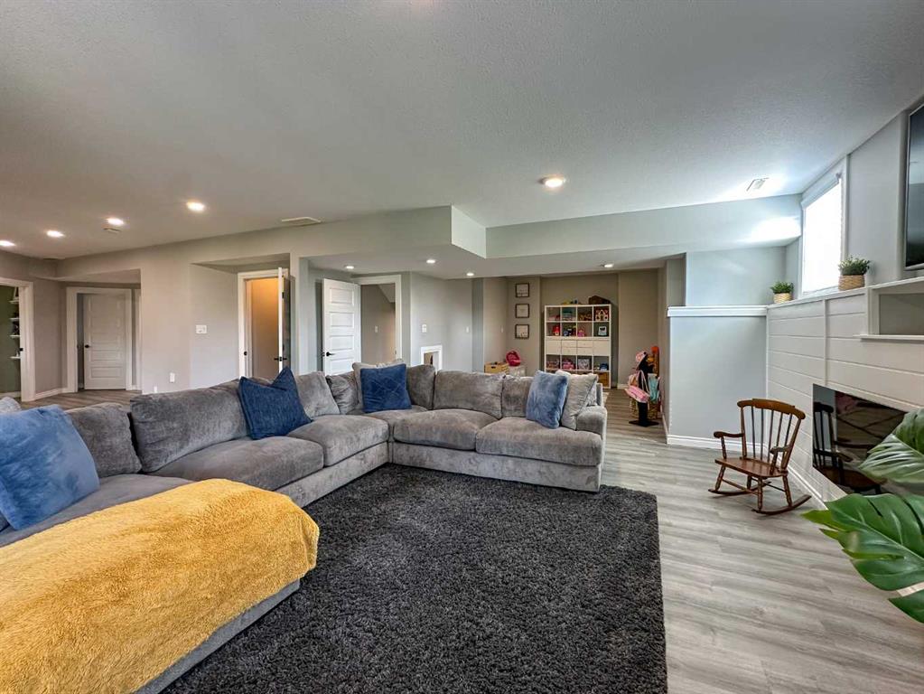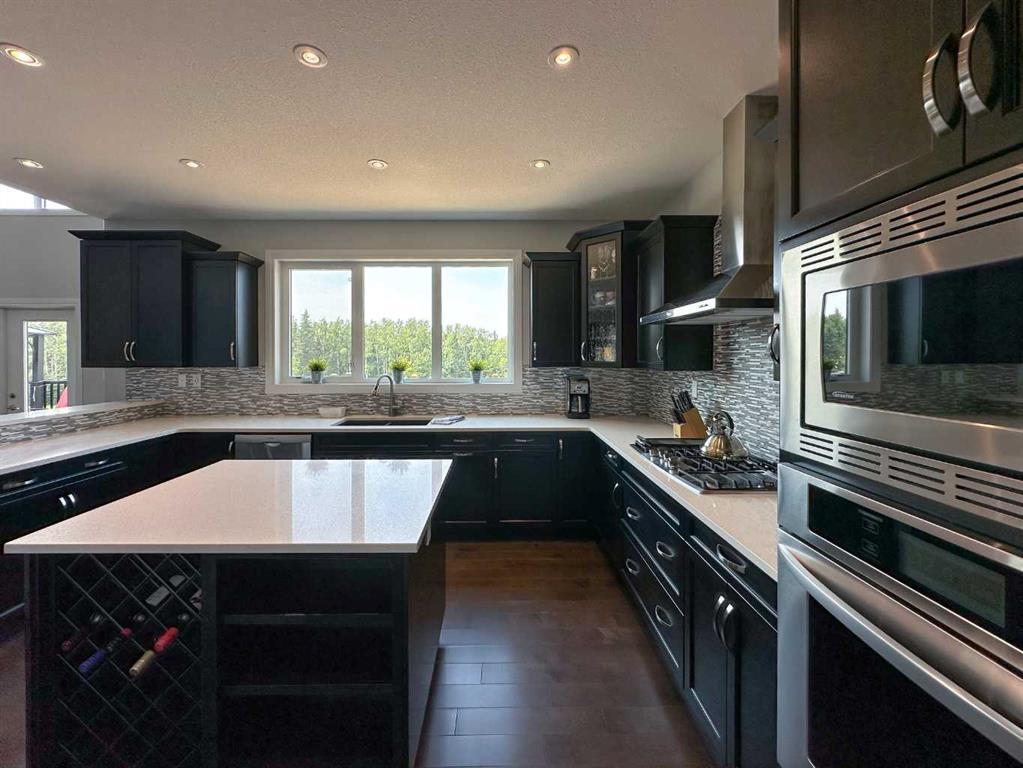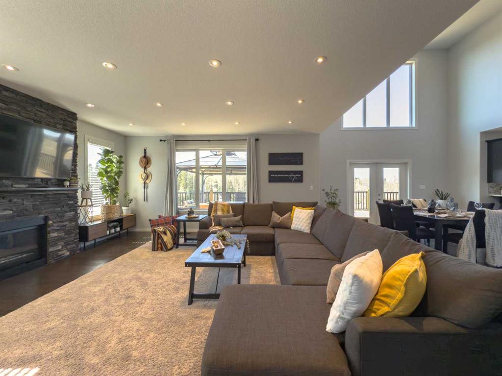Welcome to your dream home! This exquisite 5-bedroom, 4-bathroom residence combines luxurious living with serene seclusion on an expansive 3.41-acre property. Located in a prestigious neighborhood, this property offers unparalleled privacy and luxury. Throughout the home, find premium materials and finishes that exemplify quality and sophistication. Entering the home you will notice a stunning open foyer and Spacious Living Area. Enjoy the generous living space including a dining area with high ceilings and lots of natural light, an open cozy family room with a fireplace, and stunning Kitchen with custom cabinetry, a spacious island, and a large pantry with access to garage for easy access. On the main level enjoy a dedicated office space ideal for remote work or study . Walking upstairs The master bedroom is a private retreat including a master bath with dual vanities and a gorgeous shower. Enjoy the large walk-in closet that not only is connected to the bathroom but also the laundry room which creates a seamless flow . Next walk through to two more bedrooms both including walk in closets that offer ample space and comfort, ideal for family and guests . Next a charming 4 piece bathroom close to bedrooms. Making your way downstairs you will first notice the open feeling and amazing walkout with an incredible view. The Basement Includes two more bedrooms as well as a 3 piece bathroom that has just been completed with stunning tile work. The family room has an incredible amount of space as well as the possibility to create a bar area with everything roughed in for completion. The Three-Car Garage is Spacious and convenient for vehicles and storage. Outdoor Entertainment is perfect for this home when you can Enjoy a beautifully landscaped yard with an extra large patio, perfect for entertaining while Experiencing the stunning views and tranquility. This home is surrounded by perfectly landscaped trees and lush greenery. This luxurious property offers a perfect blend of comfort, elegance, and privacy. Located only 10 min from town and under 10 min to a beautiful lake close by. Don’t miss your chance to own this magnificent home and experience its beauty and charm firsthand!