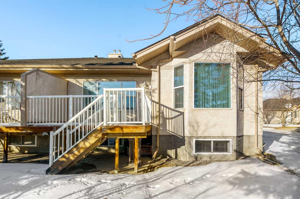 Welcome to the sought-after neighbourhood of Panorama Hills in NW Calgary. This townhome/bungalow in the adult (+18) community of Emerald Park is an ideal fit both location and convenience-wise for those with busy lifestyles. With 2,500sq. ft. of living space, a fully developed lower level, 4 bedrooms, 3 bathrooms, a front-facing insulated attached double garage, and numerous upgrades, this is the ideal home. The main level is an open floor plan and boasts warm, solid hardwood floors throughout with linoleum in the kitchen. Adjacent and to the left of the foyer is a bedroom which could be utilized as a home office. The dining room is sizeable and highlights a tray ceiling. Down the hall is the cozy, well-windowed (bow window) living room with a charming, tiled gas fireplace. The kitchen is a study in efficiency. Sleek, white cabinets and pantry, matching tiled backsplash, white quartz countertops, Blanco double sink newer white appliances, an island/breakfast bar and an induction range with convection oven. The breakfast nook also features a bow window flooding the main level with tons of natural light. The roomy primary bedroom has a good-sized closet and a handy 4-pc. ensuite with quartz countertop. The main level is completed with a 3-pc. bath and a laundry room cleverly hidden behind fitted doors. Moving to the fully finished, carpeted and well-designed lower level, enter a large and comfy rec room and two additional large bedrooms, both with substantial closet space. A 4-pc. bath, utility room and storage space finish the lower level. Admittance to the rear, railed, and very private (no neighbours in the back) deck is via the living room. The deck is ready for barbeque season with the benefit of a gas line. Access to everything is an understatement regarding location. At the junction of Panorama Hills and Country Hills Boulevard and the numerous shopping centers and restaurants, close to Stoney Trail, various schools, day homes and churches, Nose Creek Park, Country Hills Golf Club, Cross Iron Mills and Calgary International Airport. Take note of how well this home has been cared for and the many upgrades and improvements, i.e. the kitchen, new garage door, water softener and heater, new furnace and the valuable additions of central air conditioning and central vac. Also consider the convenience of common area maintenance by a professional property manager. Do call for your private tour to avoid missing out on this great opportunity.