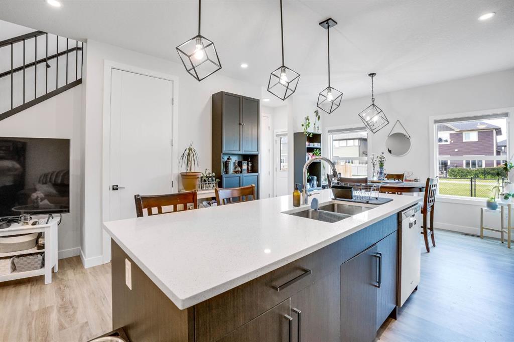 Welcome to this stunning semi-detached home with a front-attached garage, nestled in the vibrant and family-friendly community of Midtown, Airdrie. Thoughtfully designed with both style and functionality in mind, this two-storey home is perfect for families or anyone seeking a modern, connected lifestyle. Step inside to a bright and contemporary kitchen overlooking the charming courtyard, complete with sleek countertops, stainless steel appliances, and a spacious centre island. The open-concept main floor flows effortlessly, creating the ideal space for everyday living and entertaining. Upstairs, you’ll find three spacious bedrooms, including a luxurious primary suite featuring a walk-in closet and a private ensuite. A convenient upstairs laundry and an additional full bathroom complete this level. An unfinished basement with its own side entrance, ready to be transformed into a space that fits your needs. Outside, enjoy a large backyard along with access to scenic walking paths, schools, shopping, and all of Airdrie’s best amenities just minutes away.