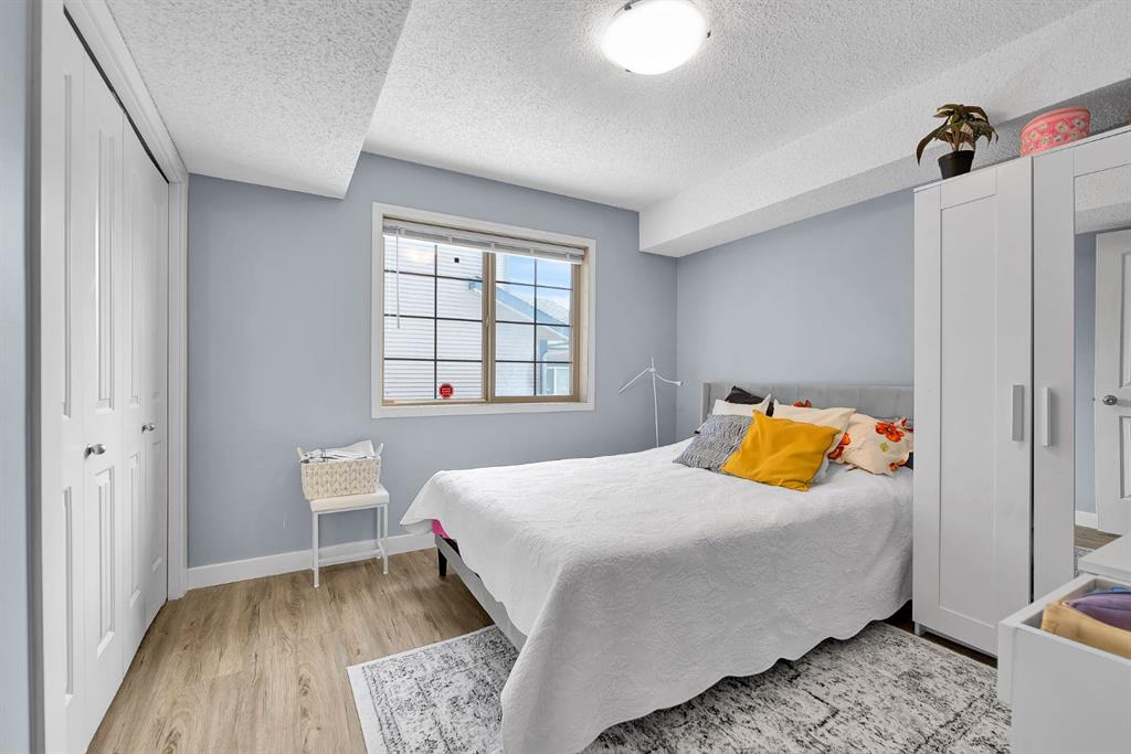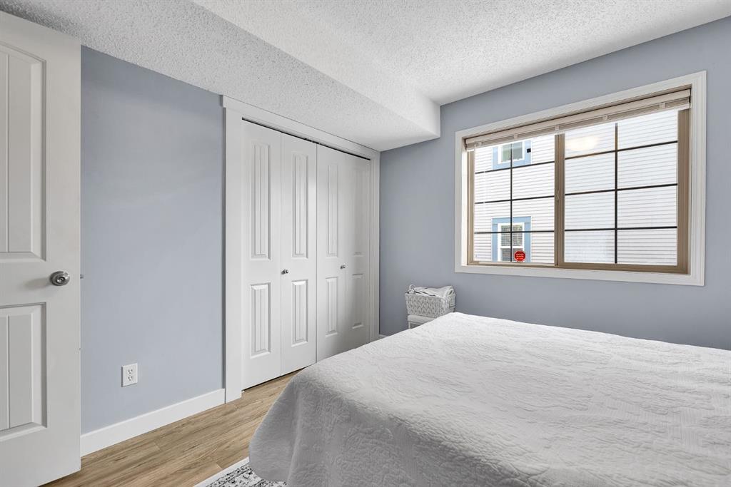 Welcome to this stylish corner-unit, single-level townhouse condo in the highly desirable Southwest community of Evergreen. Offering approximately 800 sq. ft. of thoughtfully designed living space, this bright and inviting home features a sun-filled open-concept layout perfect for both everyday living and entertaining. The welcoming foyer includes a functional closet, while in-floor heating throughout the unit ensures year-round comfort. The modern white kitchen is equipped with stainless steel appliances, a convenient pantry, and a large central island, seamlessly connecting to the spacious living and dining areas. Large windows allow natural light to pour in, enhancing the airy and welcoming feel throughout the home. This well-appointed layout offers two generous bedrooms and one beautifully finished bathroom, creating a comfortable and inviting retreat. You’ll also appreciate the dedicated laundry room and additional storage, adding to the home’s practicality. Enjoy the rare convenience of two parking stalls — one titled and one assigned — and an unbeatable location that truly elevates everyday living. Just steps from Fish Creek Provincial Park, and close to schools, parks, shopping, transit, and major routes including Macleod Trail and Stoney Trail, this home offers the perfect blend of comfort, style, and accessibility.